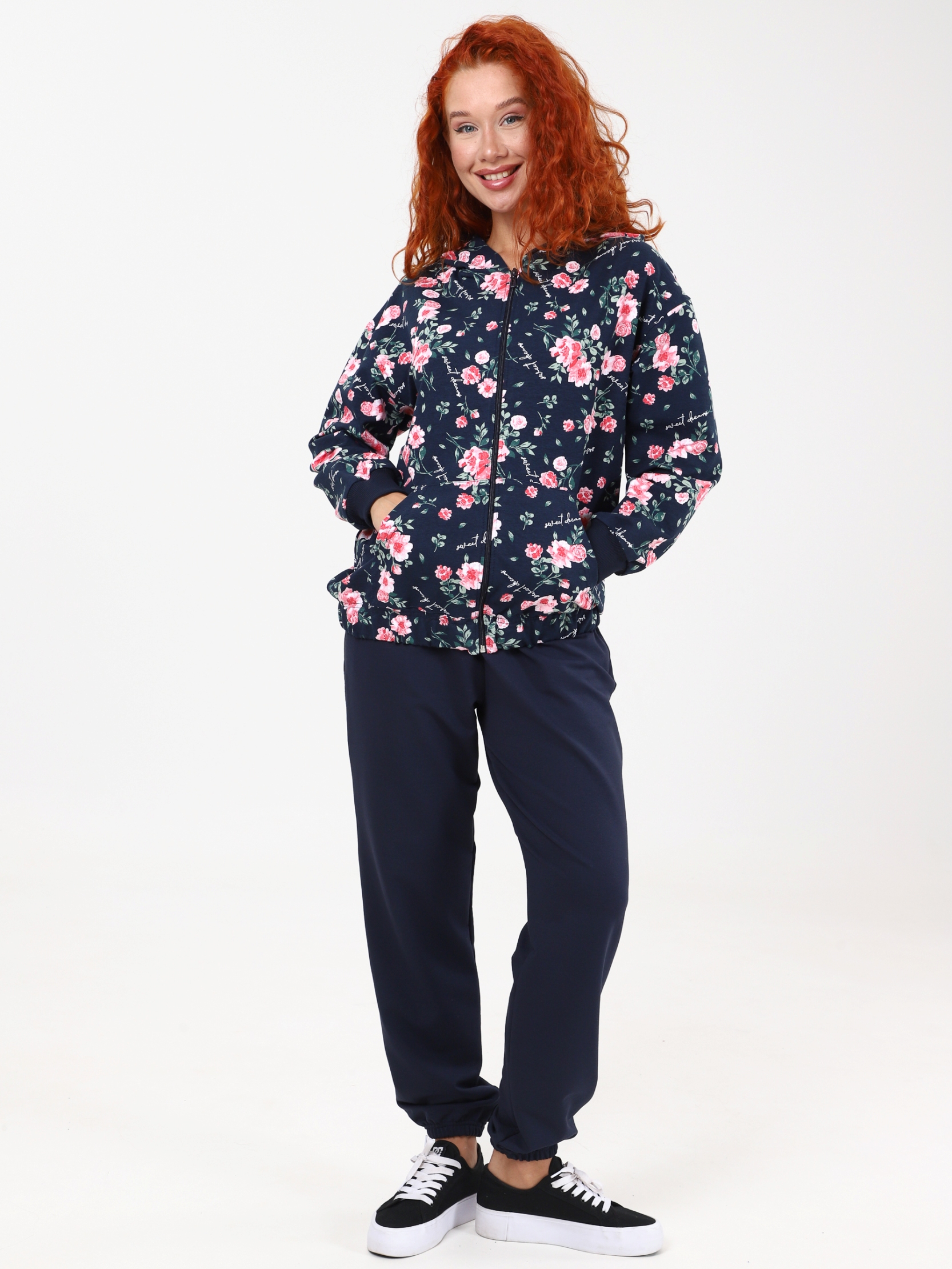 Женский спортивный костюм на молнии больших размеров - идеальный выбор на каждый день. Костюм женский на молнии выполнен из плотного трикотажного материала - футер без начеса. Женский костюм состоит из худи на молнии с капюшоном и брюк джоггеров со средней посадкой и карманами, внизу брючин резинка.  Костюм выдержан в спортивном стиле, что позволяет носить его в различных обстоятельствах. Он уместен в кафе, на прогулке в парке или на спортивной площадке.