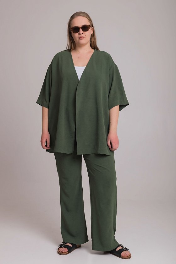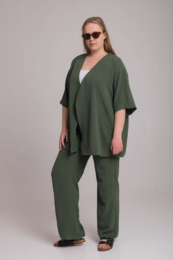 Состоит из кардигана без застежки, который можно просто носить или полочки