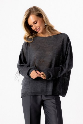 Воротник, лацканы, борта, низ переда и спинки обработан отделочным серебристым кантом. Жакет с плечевыми накладками.