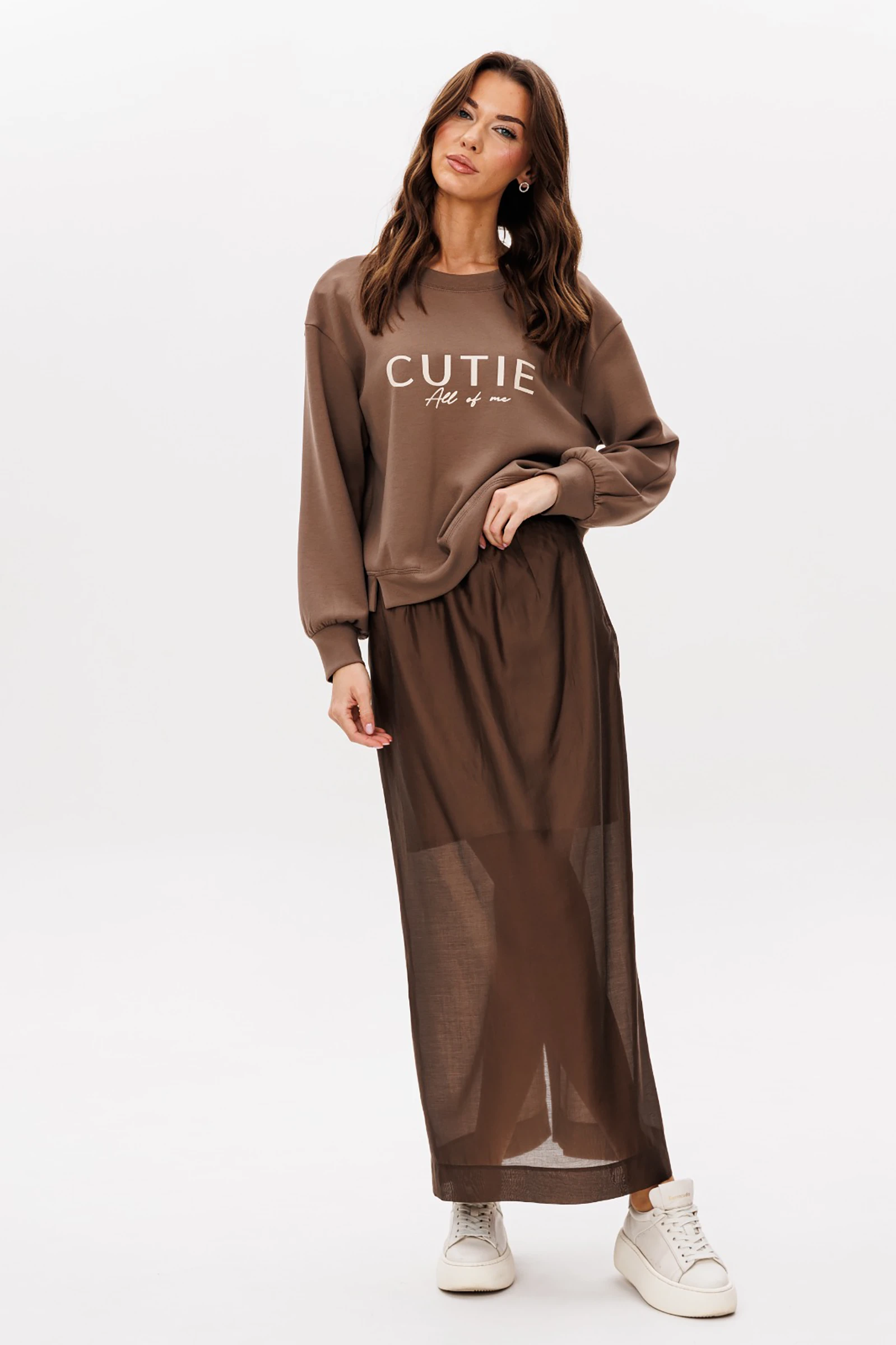 Базовый женский джемпер с круглой горловиной в сочетании с длинной элегантной юбкой - ещё один тренд этой осенью и зимой. Главный секрет, который сделает из юбочных комбинаций ультрамодные, скрывается в сочетании в одном образе вещей контрастных текстур. Такой монохромный look идеально подходит для создания нескучного аутфита.