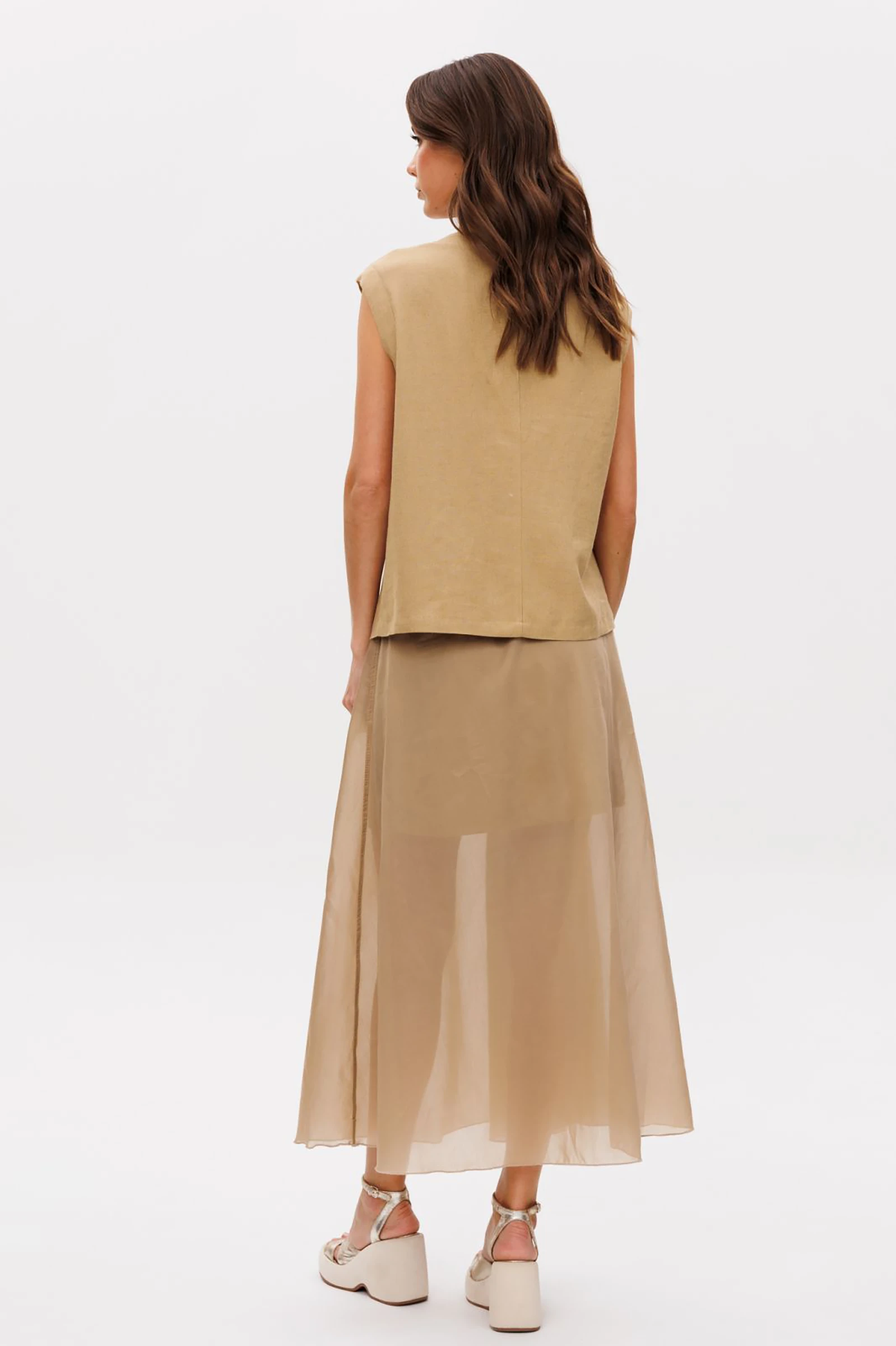 Лето-время для экспериментов в одежде! Не бойтесь внести в свой гардероб нотку романтичности и воздушности с помощью прозрачных тканей: летящее и нежное вуалевое полотно делает образ загадочным и немного сказочным. В сочетании с натуральным льном получается невероятный эффект: простой костюм смотрится дорого и элегантно.