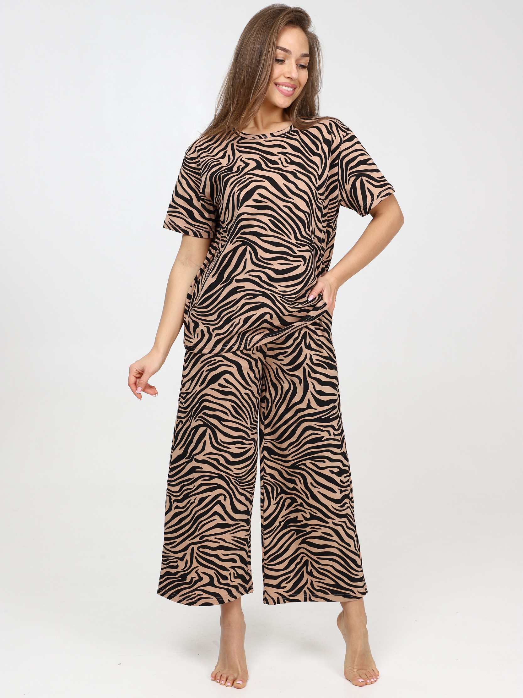 Костюм с брюками кюлотами идеально подходит для использования в дачных условиях или для  дома. Наш женский домашний комплект - это идеальный выбор для женщин, идеальная пижама для сна и отдыха.