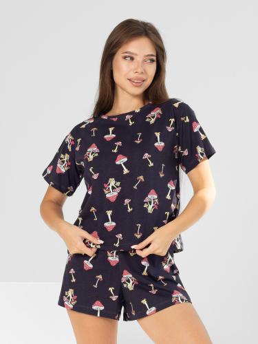 Костюм женский кулирка с шортами "ГРИБОЧКИ" БЕЛЫЙ