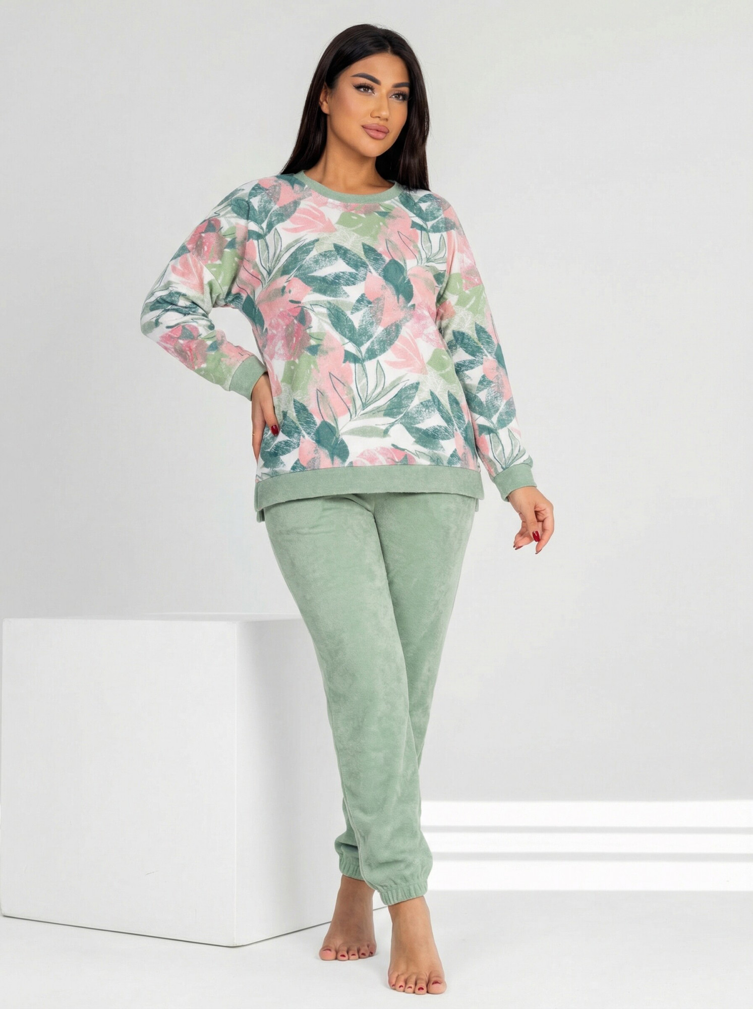 Костюм женский махра с брюками "ЗЕМФИРА" ЗЕЛЕНЬ