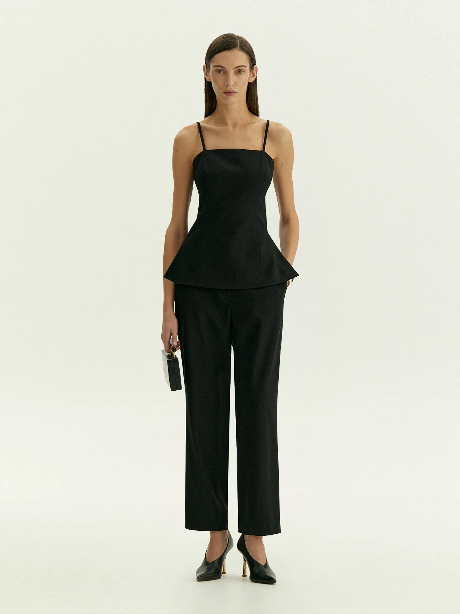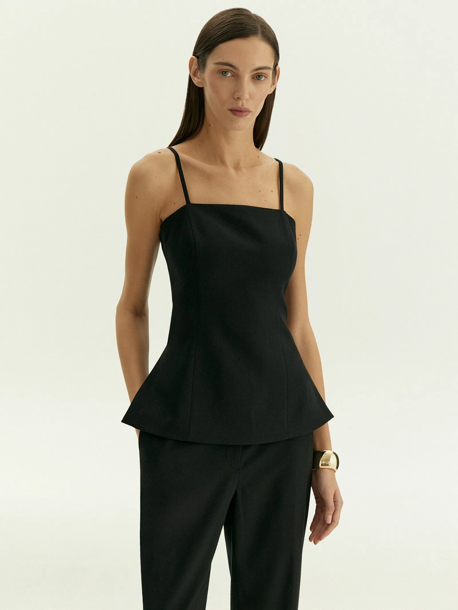 Фиксируется на тонких бретелях — бретели съемные и регулируемые. Топ сделан из костюмной ткани и может стать частью капсулы с жакетом, жилетом, юбкой и брюками voyla.