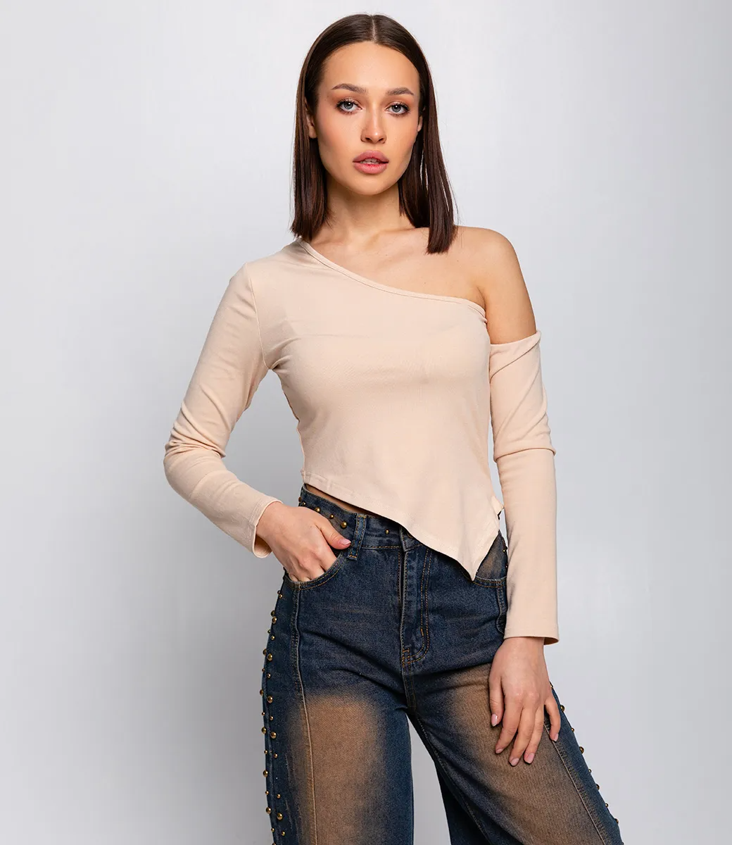Укороченный кроп топ - это верхняя часть одежды с обрезанным подолом, который обычно заканчивается на уровне талии или ниже. Такой крой создает модный и современный вид, позволяя показать красивую линию талии и подчеркнуть формы. Комбинируйте кроп топ с высокой посадкой джинсами, юбкой или шортами для создания элегантного и стильного образа. Открытое плечо добавляет пикантности и сексуальности к кроп топу. Длинные рукава придают кроп топу изысканный и стильный вид.