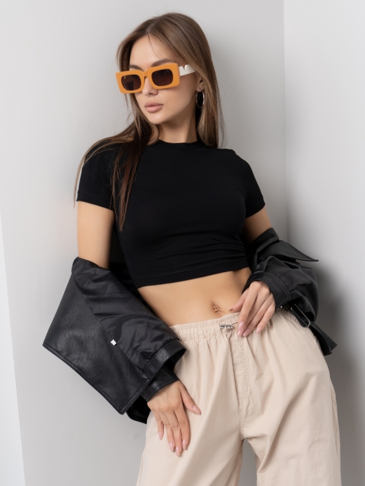 Женский укороченный кроп-топ – идеальный выбор для стильных и модных девушек. Изготовленный из вискозы, этот кроп-топ обеспечивает комфорт и ощущение легкости на протяжении всего дня. Особенностью этого кроп-топа является натуральный материал, который позволяет коже дышать и поддерживает ощущение свежести даже в жаркие летние дни. Вы будете чувствовать себя комфортно в любой ситуации, будь то прогулка по городу или вечерний выход. Этот кроп-топ отлично сочетается с любыми низом. Вы можете носить его с джинсами или шортами для создания повседневного образа, а также с юбкой или брюками для более формального стиля. Кроп-топ – модная и актуальная модель, которая позволит вам выглядеть стильно и современно. Рост модели на фото 170 см. Параметры модели: 80-61-87. Размер изделия на модели: 42. Материал: вискоза с лайкрой гладкокрашенная (вискоза 95%, лайкра 5%).