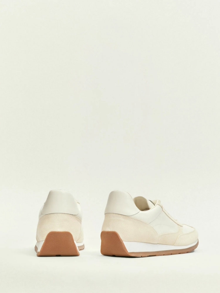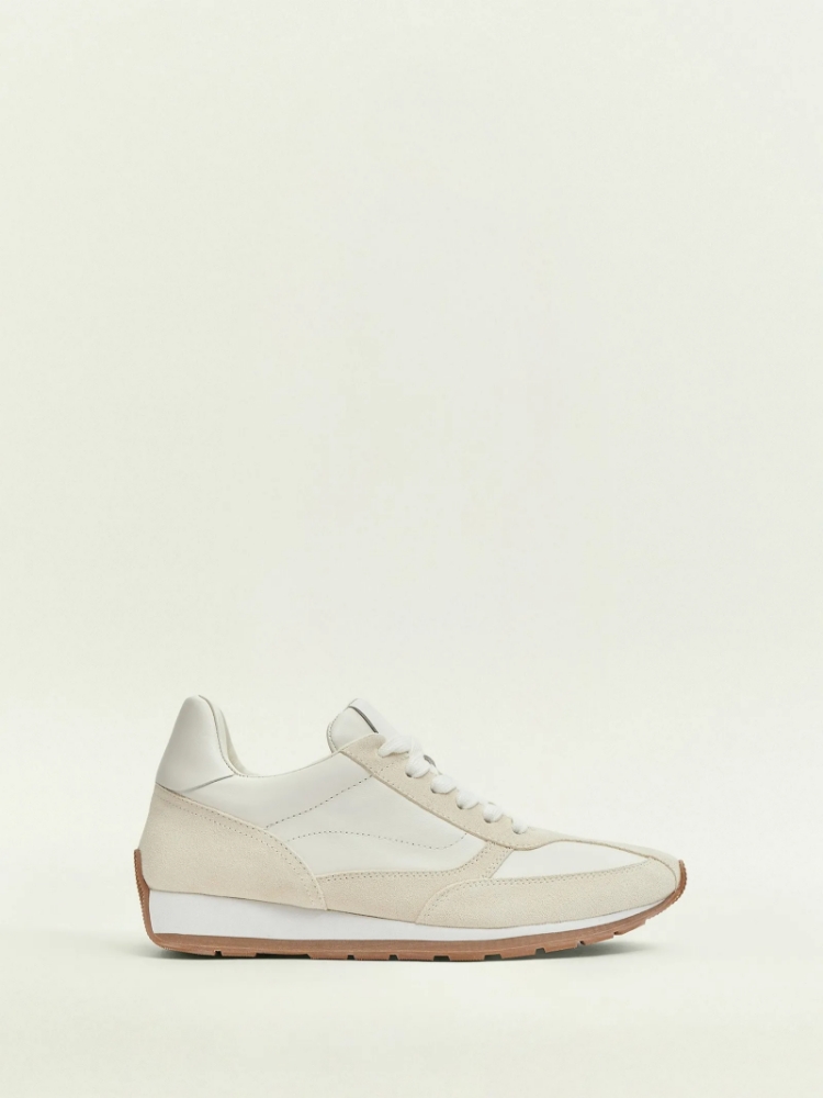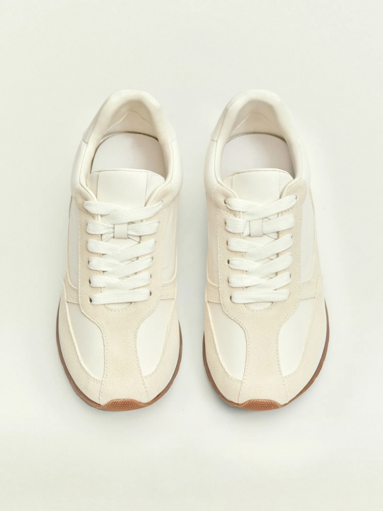 Белые кроссовки из натуральной кожи с противоскользящей рифлёной подошвой. Обеспечивают обеспечивают комфорт на весь день и безопасность при ходьбе