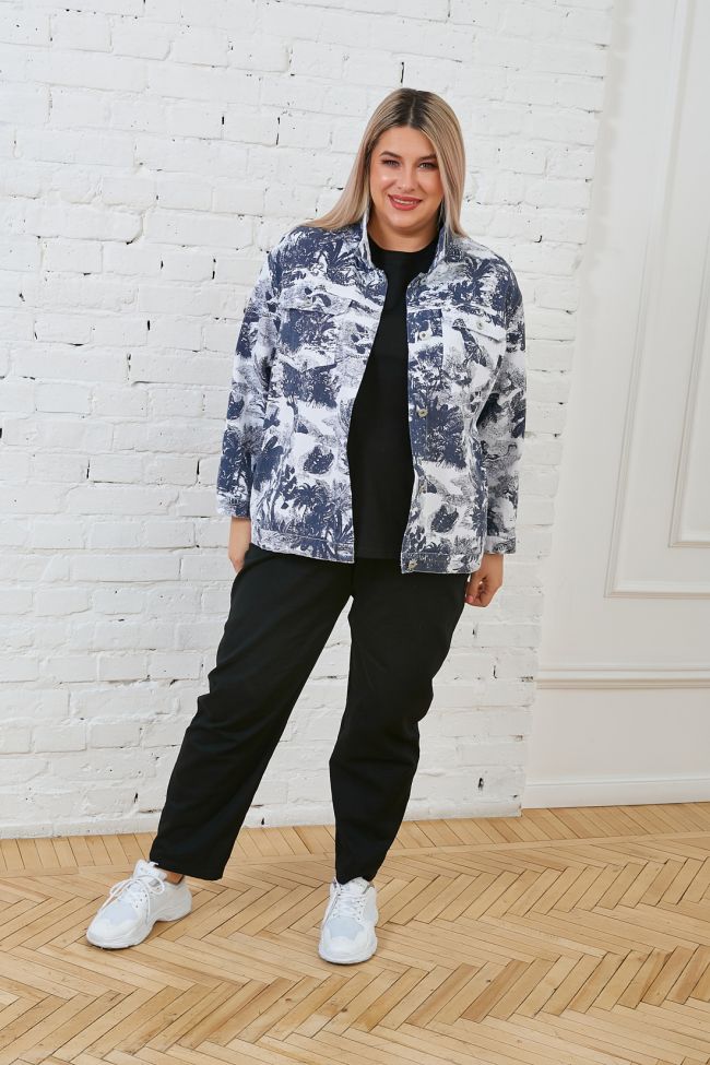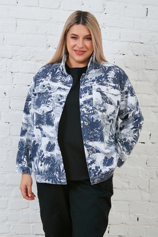 сине-белый Стильная куртка прямого силуэта, выполнена из хлопковой джинсы, без подкладки.