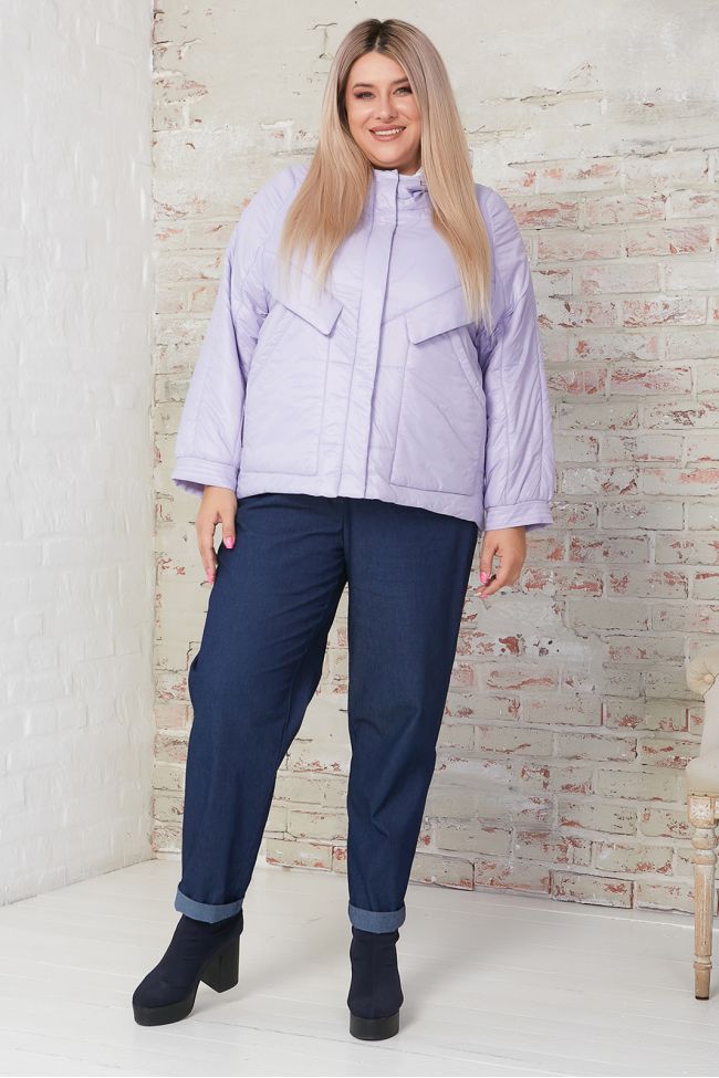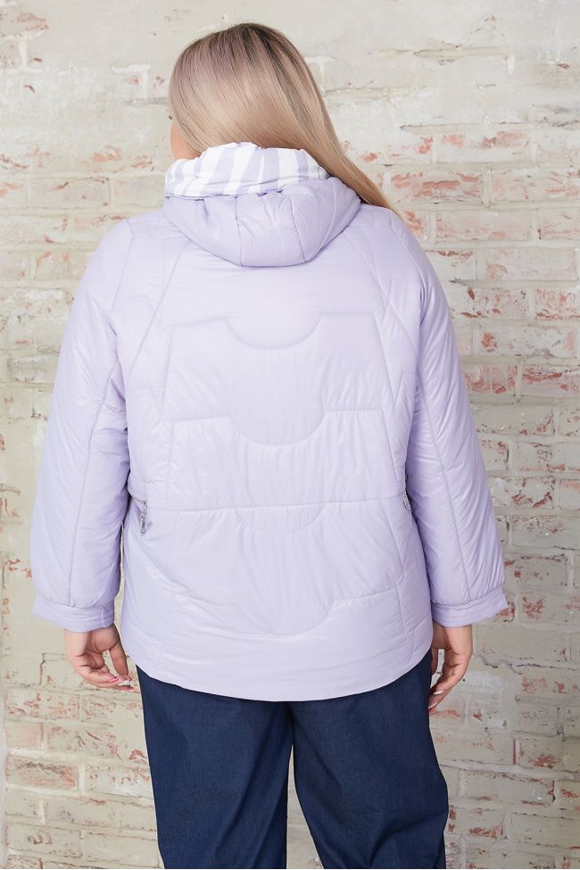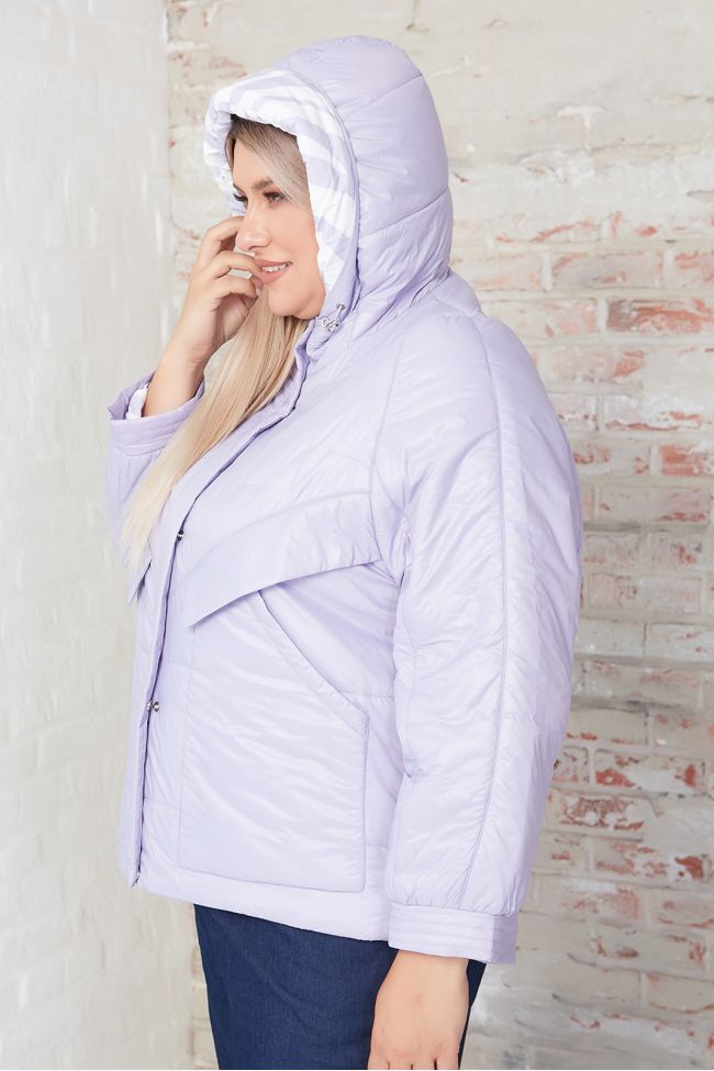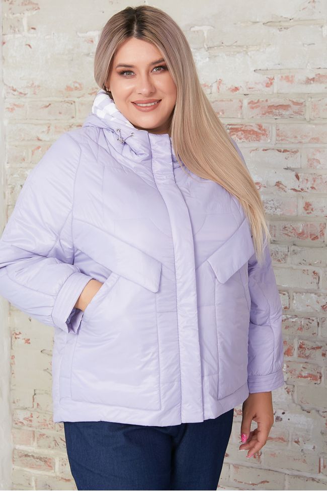 сиреневый Стильная куртка однотонной расцветки, длиной до линии бедер. Модель прямого силуэта на тонком синтепоне с яркой подкладкой. Рукав длинный на фигурной пройме, обеспечивает максимальную свободу движения, рукав по низу дополнен манжетой. Горловина оформлена стойкой переходящей в капюшон со стяжками по краю. По переду вместительные накладные карманы и центральная застежка на молнию, переходящая в капюшон, с дополнительной планкой на кнопках. По бокам спинки декоративные молнии в области талии. Низ ровный. Комфортная модель подарит комфорт и тепло в холодное время года.