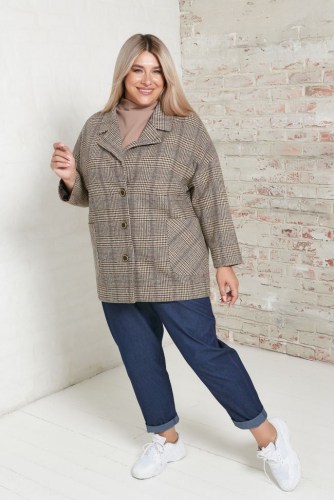 Модель с центральной застежкой на петли и пуговицы. Горловина оформлена отложным воротником. По переду и спинке отрезная кокетка. По линии груди перед дополнен накладными карманами с клапаном. Рукав длинный втачной, по низу оформлен манжетой с застежкой на петлю и пуговицу. Низ изделия ровный с притачным поясом, дополненным по бокам патой для регулировки комфортной ширины по бедрам.