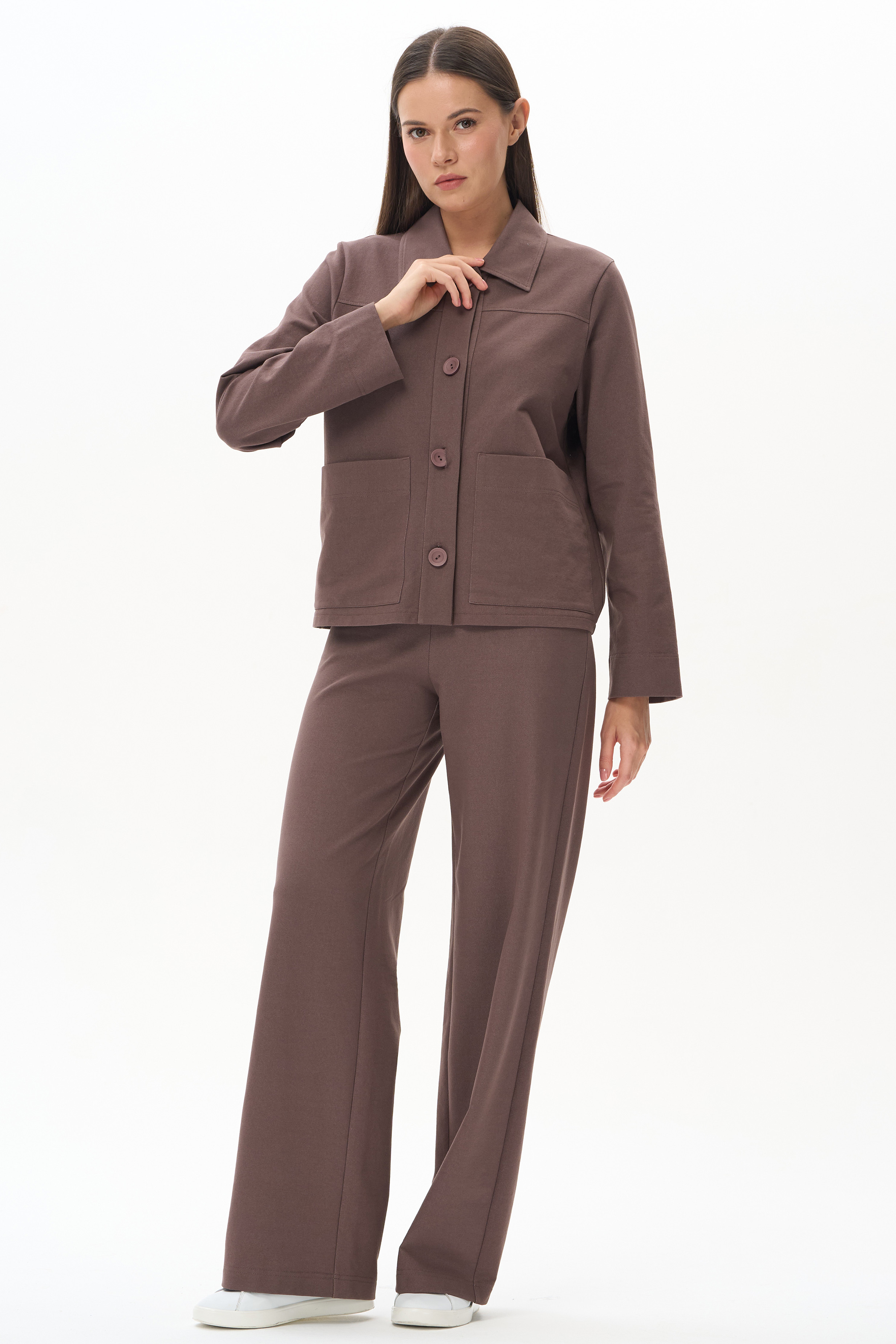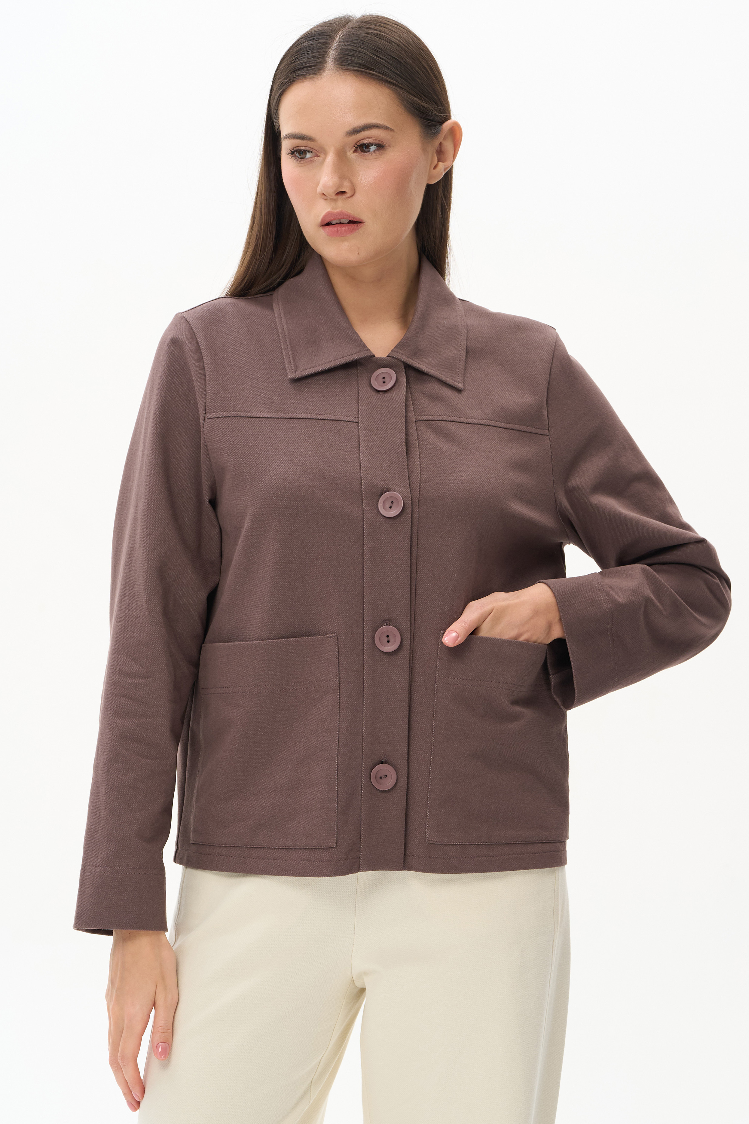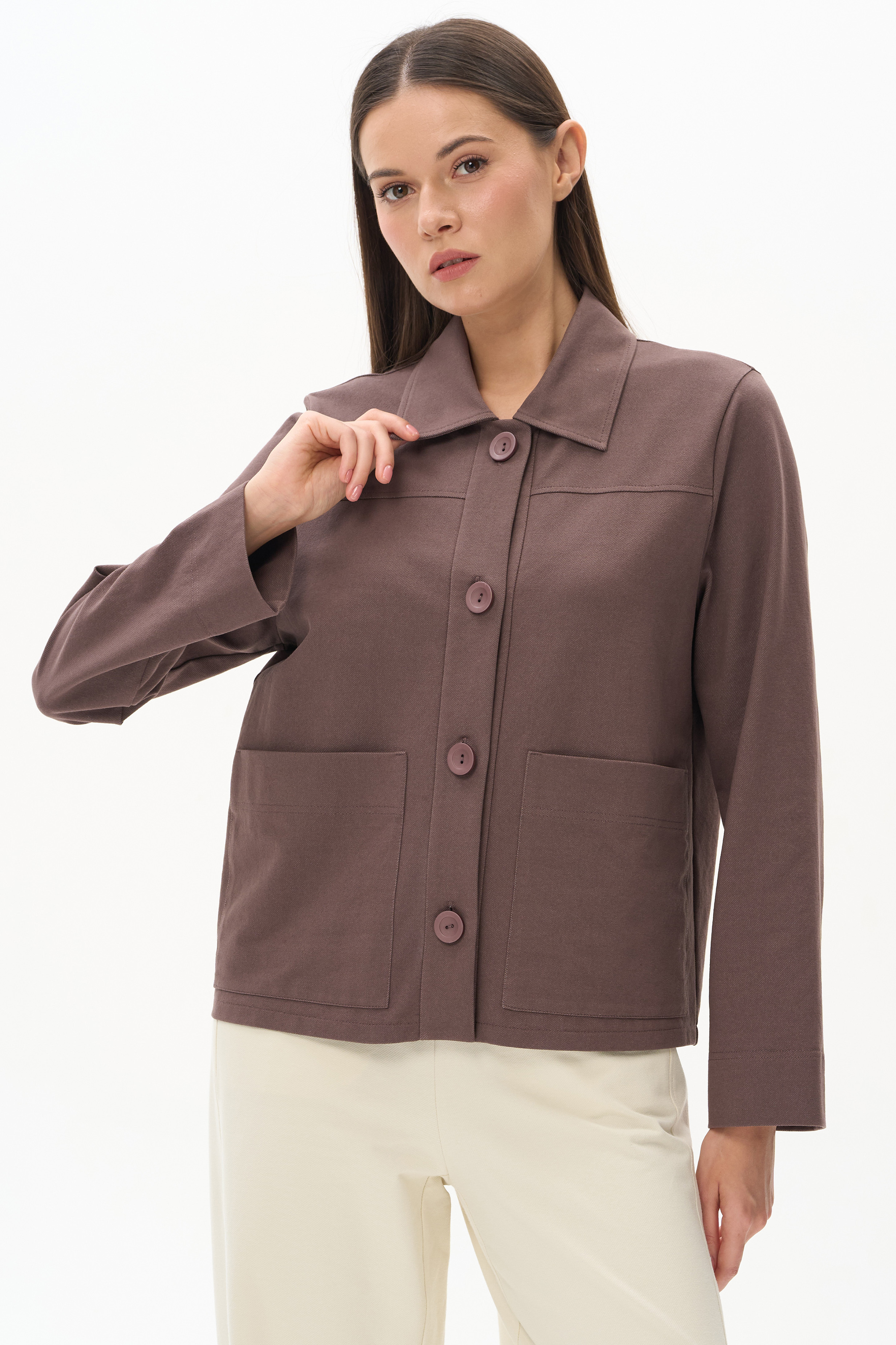 80% хлопок/ 14% полиэстер/ 6% эластан Лёгкий жакет из джинскота 240 гр в трендовом оттенке Шоколад. Модель прямого силуэта с классческим отложным воротником и застёжкой на пуговицы, накладные карманы, длинные втачные рукава с отворотом. Прекрасное решение для прогулок летними вечерами. Рост модели 175 см