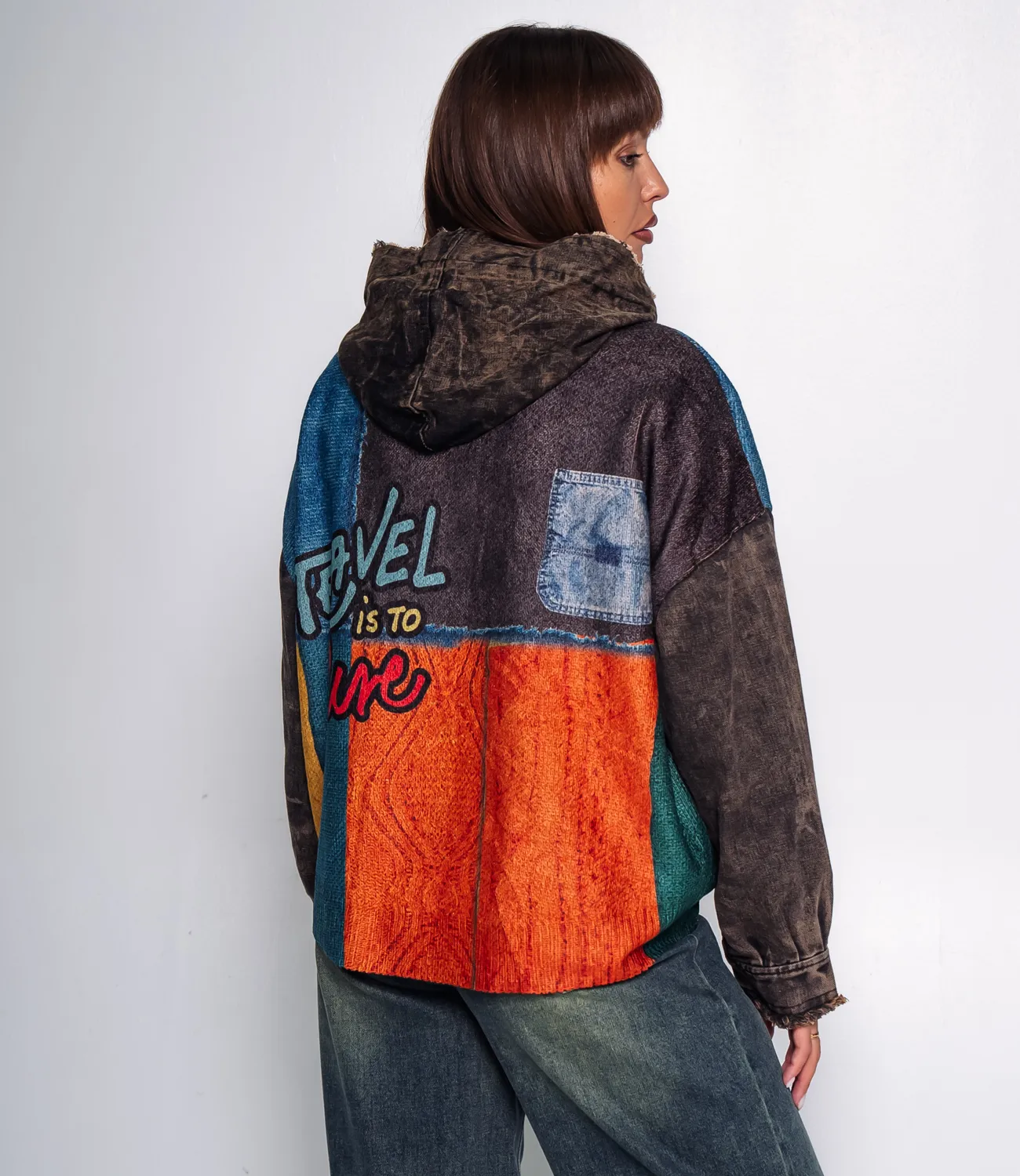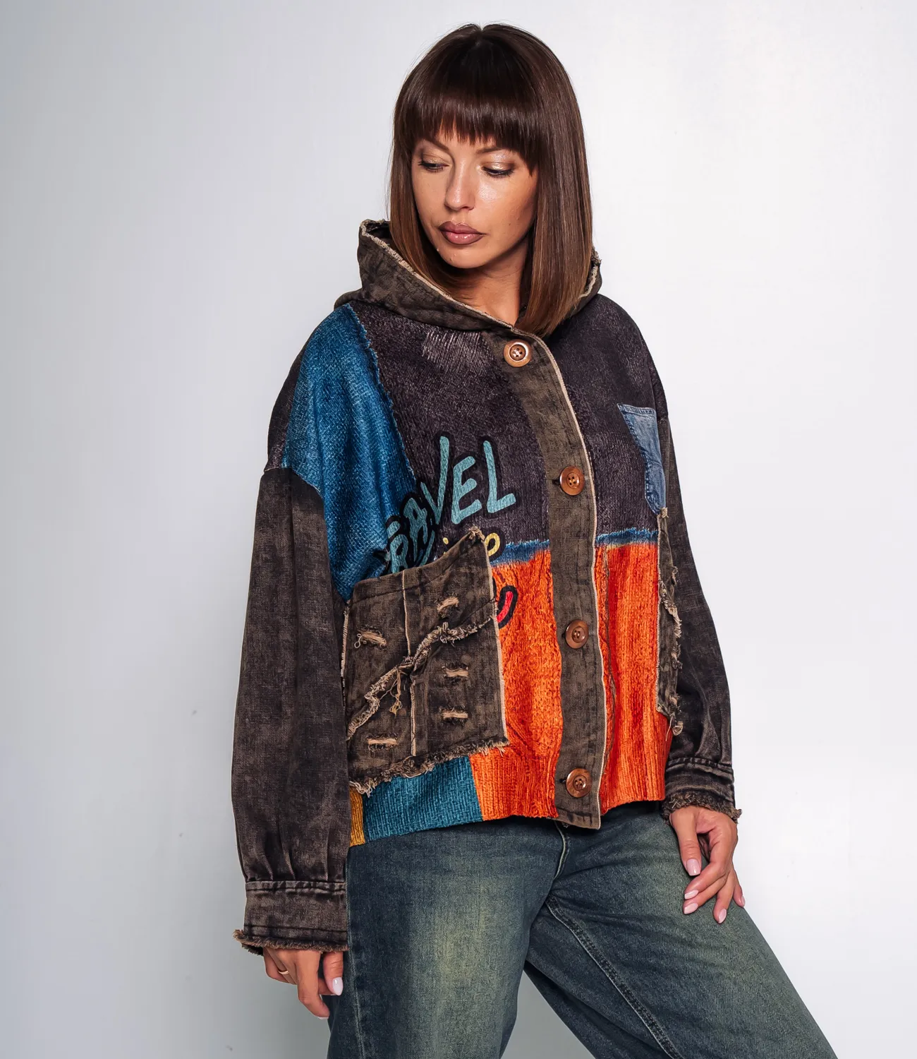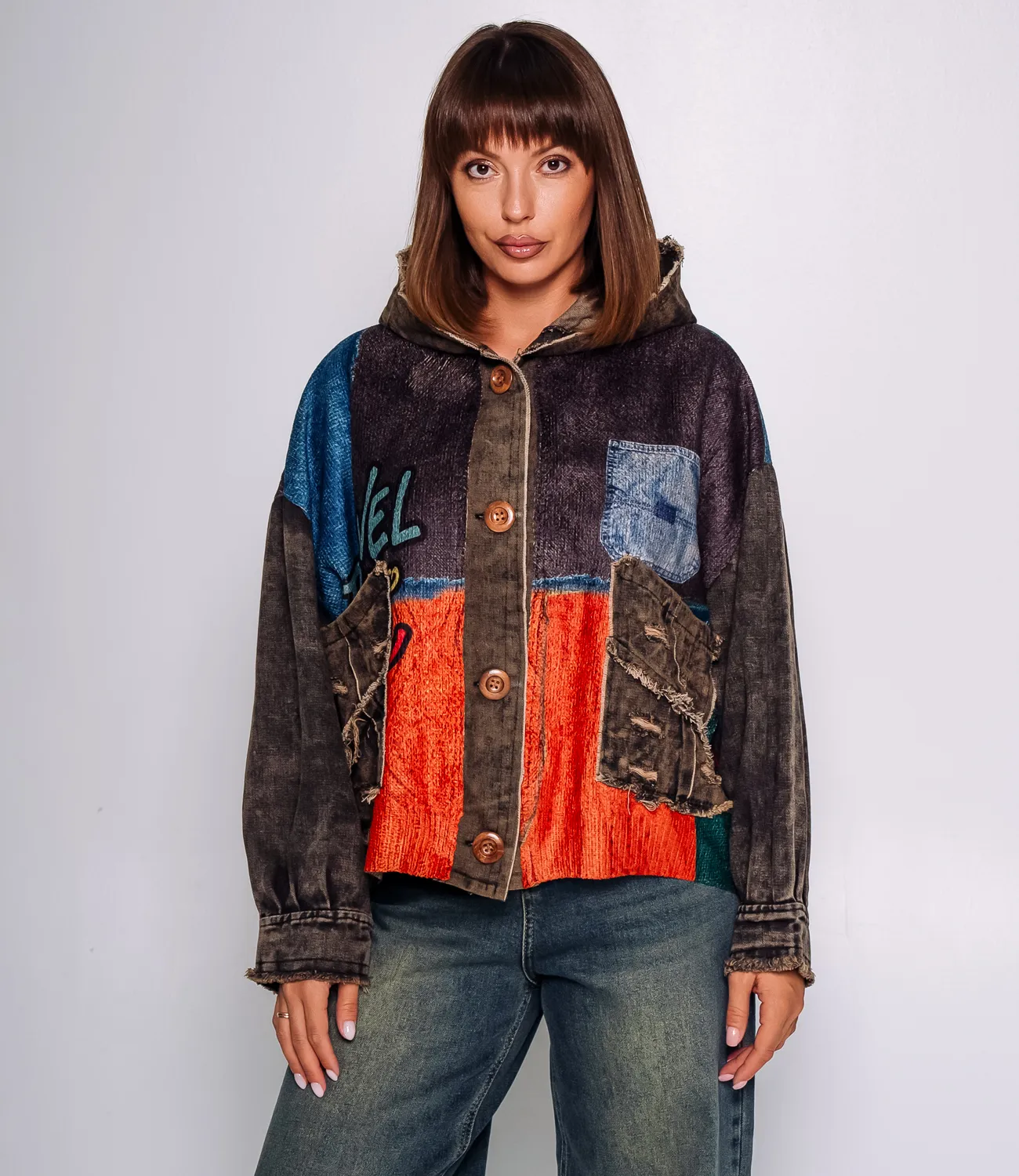 Куртка – это одежда, которая подчеркивает уникальность каждой представительницы прекрасного пола. Куртка имеет свободный крой с капюшоном и застёгивается на крупные деревянные пуговицы, что подчёркивает её стиль и практичность. Яркий мультиколорный принт с контрастными фактурами создаёт эффект многослойности и оригинальности. Центральная планка, рукава и карманы выполнены из ткани с эффектом потертости и бахромой, что добавляет образу неординарности и лёгкого винтажного шика. Куртка сочетает в себе комфорт и стиль, идеально подходит для прохладной погоды и подчёркивает индивидуальность владельца. Для изготовления использован 50% хлопок, 25% акрил, 25% полиэстер, который характеризуется отличным качеством. Даже после многократных стирок изделие не утратит первоначальной привлекательности. Вы обязательно будете его носить с радостью. Обратите внимание на цвет. Он является насыщенным и полностью соответствует фотографии на сайте. Чтобы вы были уверены в размере, мы представили на странице таблицу. Воспользовавшись ею, вы сможете сами обмерить себя и удостовериться. Установленная нами цена является приемлемой. Не откажите себе в удовольствии быть неповторимой!