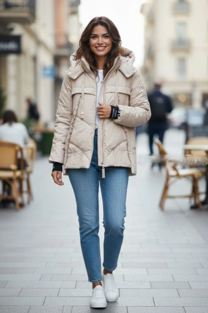 Представляем вам стильную и практичную женскую Куртку с капюшоном Идеальный выбор для прохладных дней. Эта куртка сочетает в себе элегантность, комфорт и защиту от непогоды, делая её незаменимой вещью в вашем гардеробе.