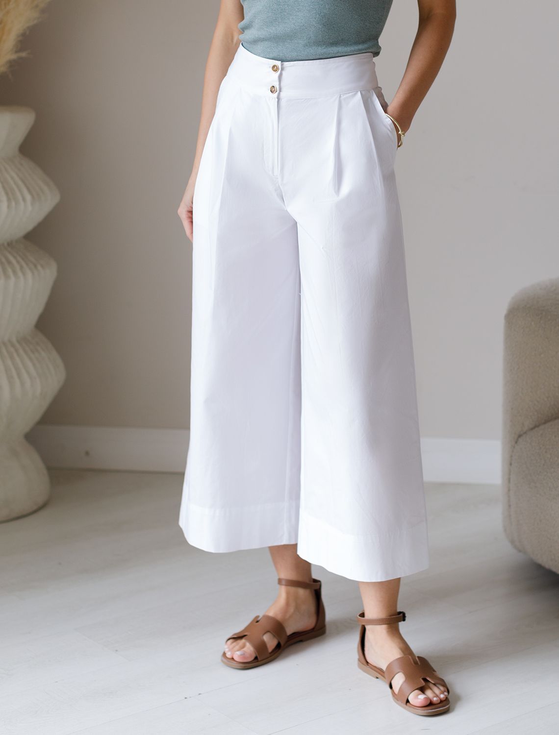 Кюлоты А-силуэта из легкого хлопкового поплина D24.233 натуральный белый