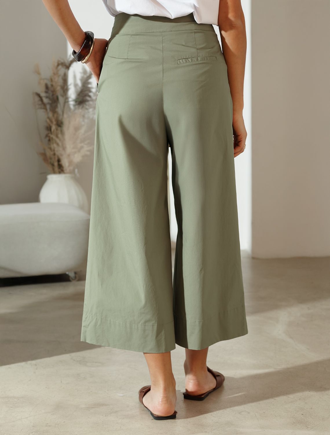 Кюлоты А-силуэта из легкого хлопкового поплина D24.233 светло-оливковый