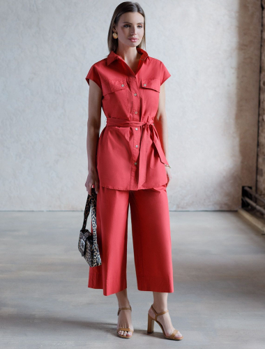 Кюлоты А-силуэта выполнены из легкого хлопкового поплина. Модель с карманами и средней посадкой. Натуральный состав ткани обладает высокой воздухопроницаемостью и гигроскопичностью. В изделии будет комфортно, даже в самое жаркое время года. Подходит для любой фигуры. Сочетается в костюме с блузкой D29.247 и D29.264.