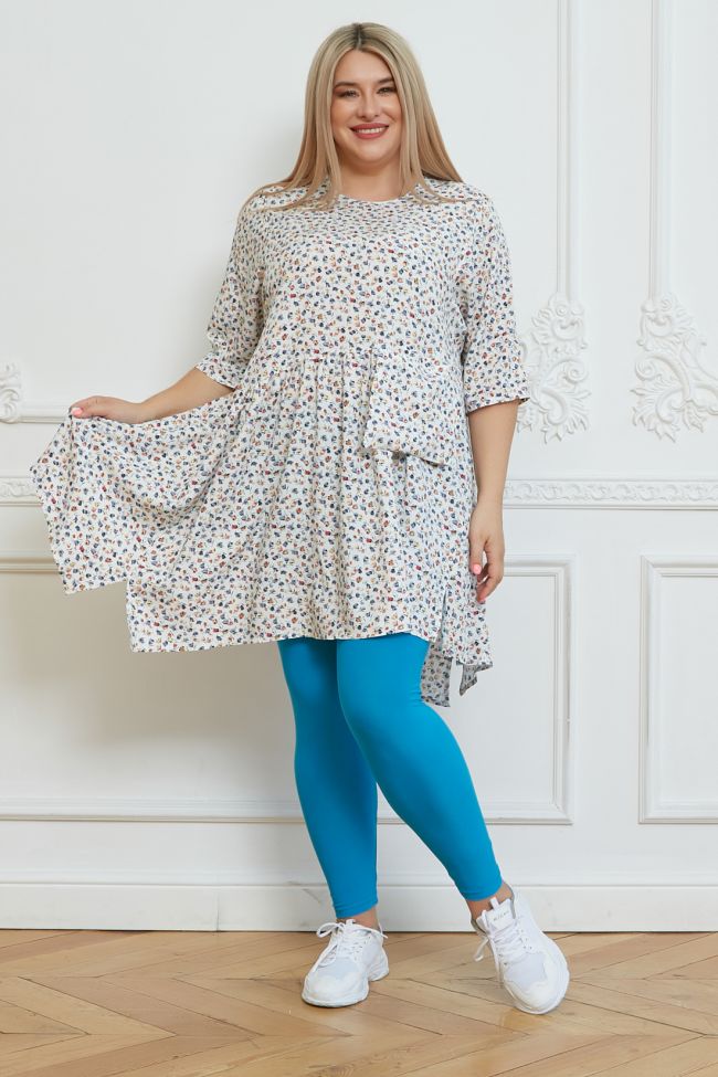 светло-голубой Стильные леггинсы из трикотажной однотонной ткани "масло", с комфортной высокой посадкой на талии. Верх с эластичным поясом. Модель замечательно дополнит туника или удлиненная блуза.
