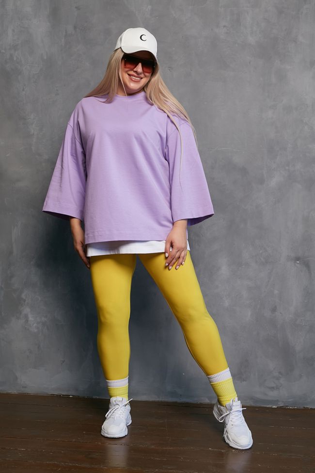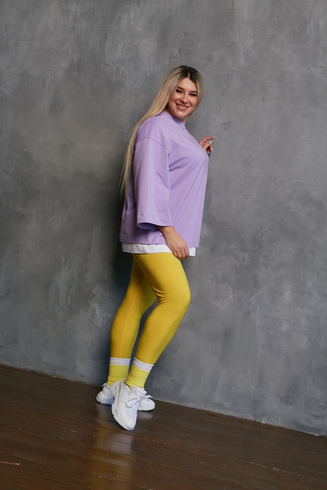 желтый Стильные леггинсы из трикотажной однотонной ткани "масло", с комфортной высокой посадкой на талии. Верх с эластичным поясом. Модель замечательно дополнит туника или удлиненная блуза.