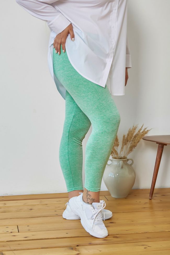 светло-зеленый Стильные леггинсы из трикотажной ткани "масло" с актуальным ярким принтом. Верх с эластичным поясом с комфортной высокой посадкой на талии. Модель замечательно дополнит туника или удлиненная блуза.