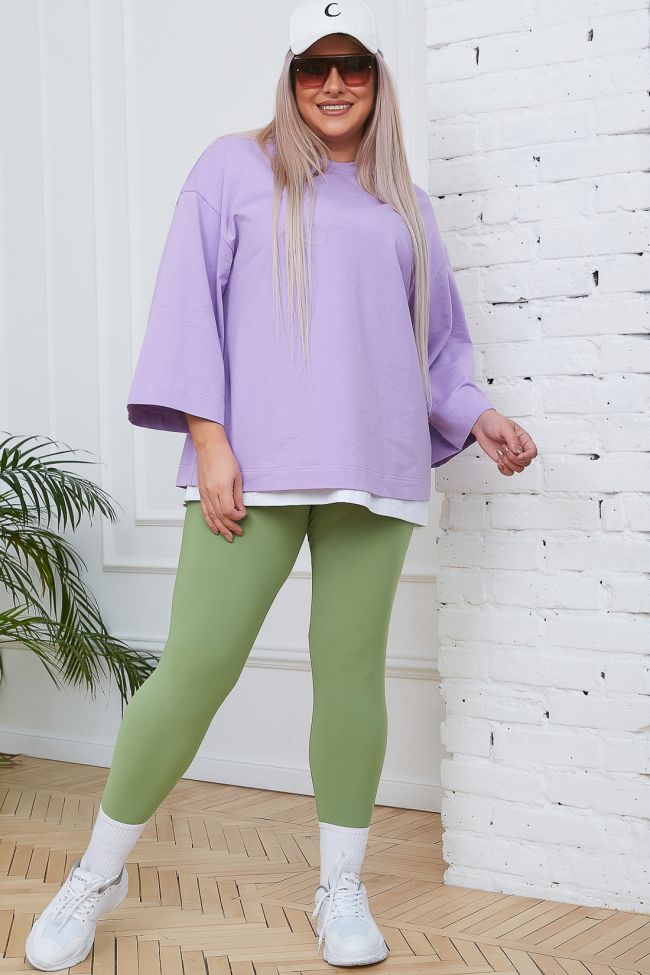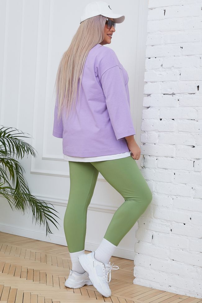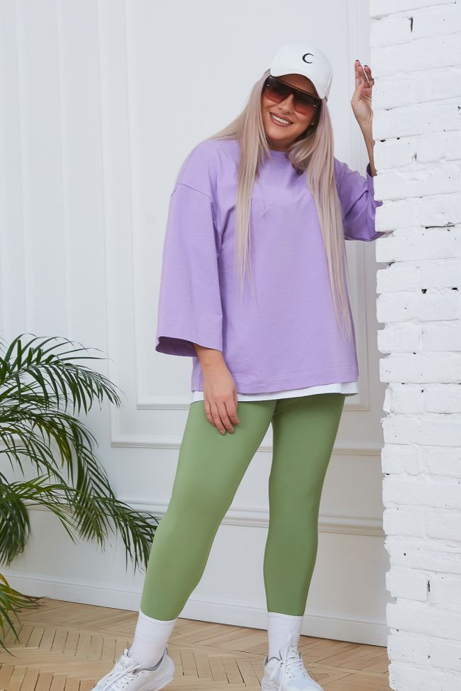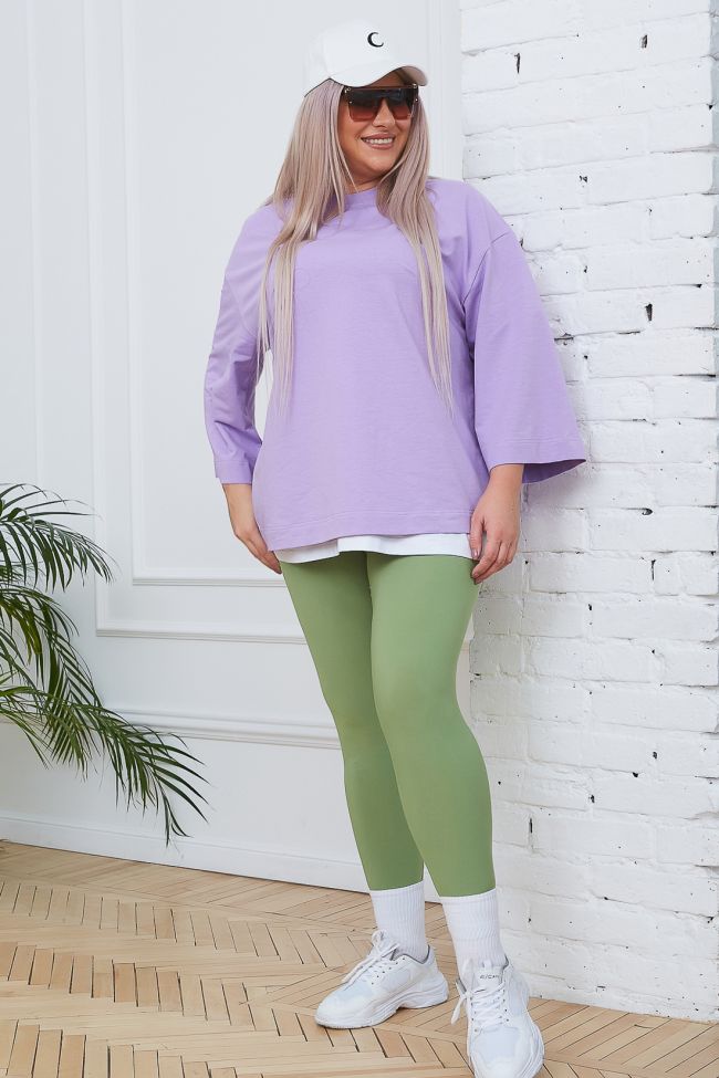 зеленый Стильные леггинсы из трикотажной однотонной ткани "масло", с комфортной высокой посадкой на талии. Верх с эластичным поясом. Модель замечательно дополнит туника или удлиненная блуза.