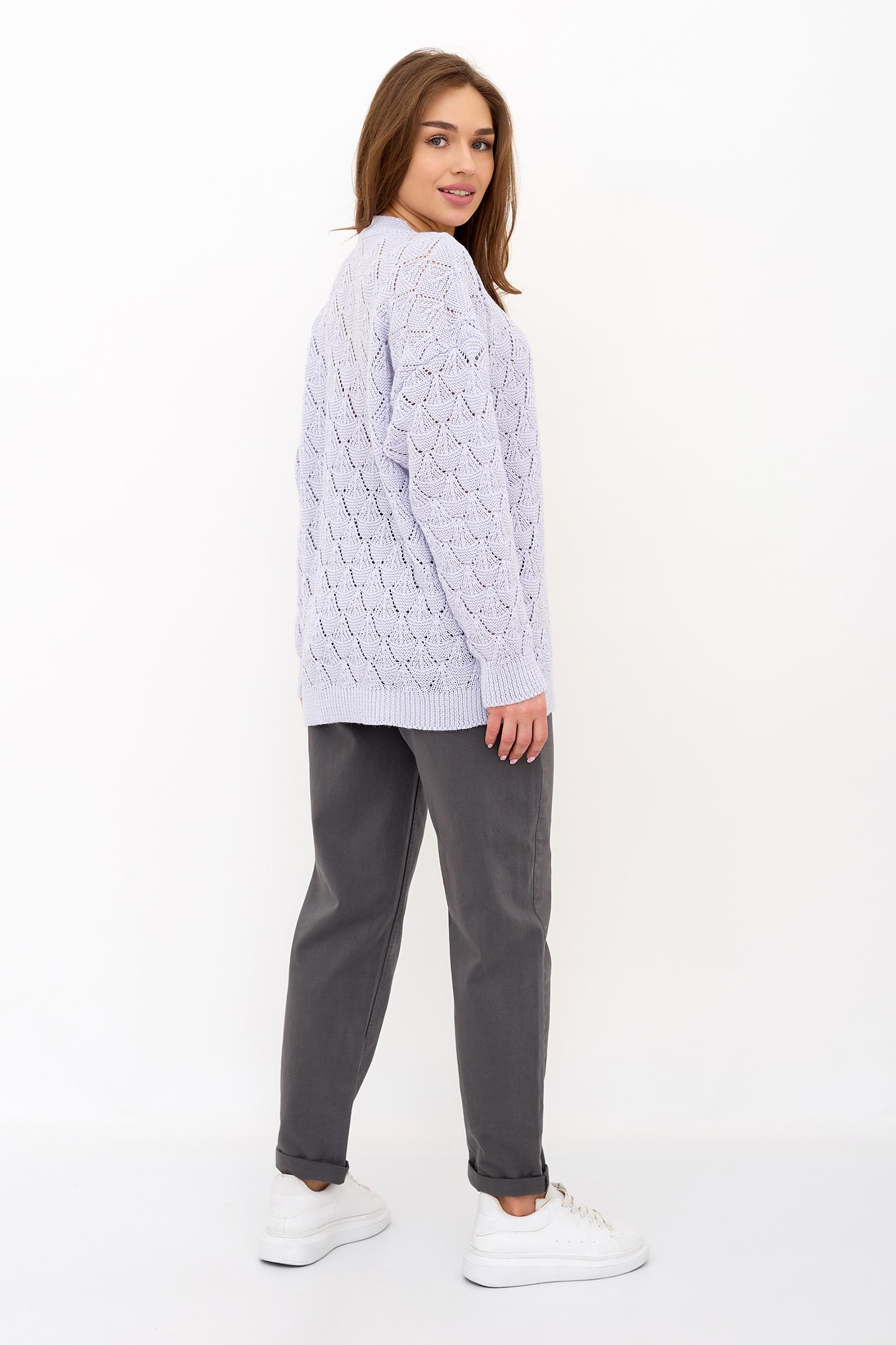 Невероятно мягкий и легкий джемпер ажурной вязки создаст стильный образ и станет неотъемлемой частью Вашего гардероба. Материал джемпера приятен к телу, Благодаря свободному крою джемпер скроет лишнее и придаст силуэту женственность. Отлично подойдет девушкам и женщинам с любым типом фигуры. Сочетать можно с брюками, джинсами, юбками создавая свои неповторимые и яркие образы как в классическом так и повседневном, спортивном стиле.
