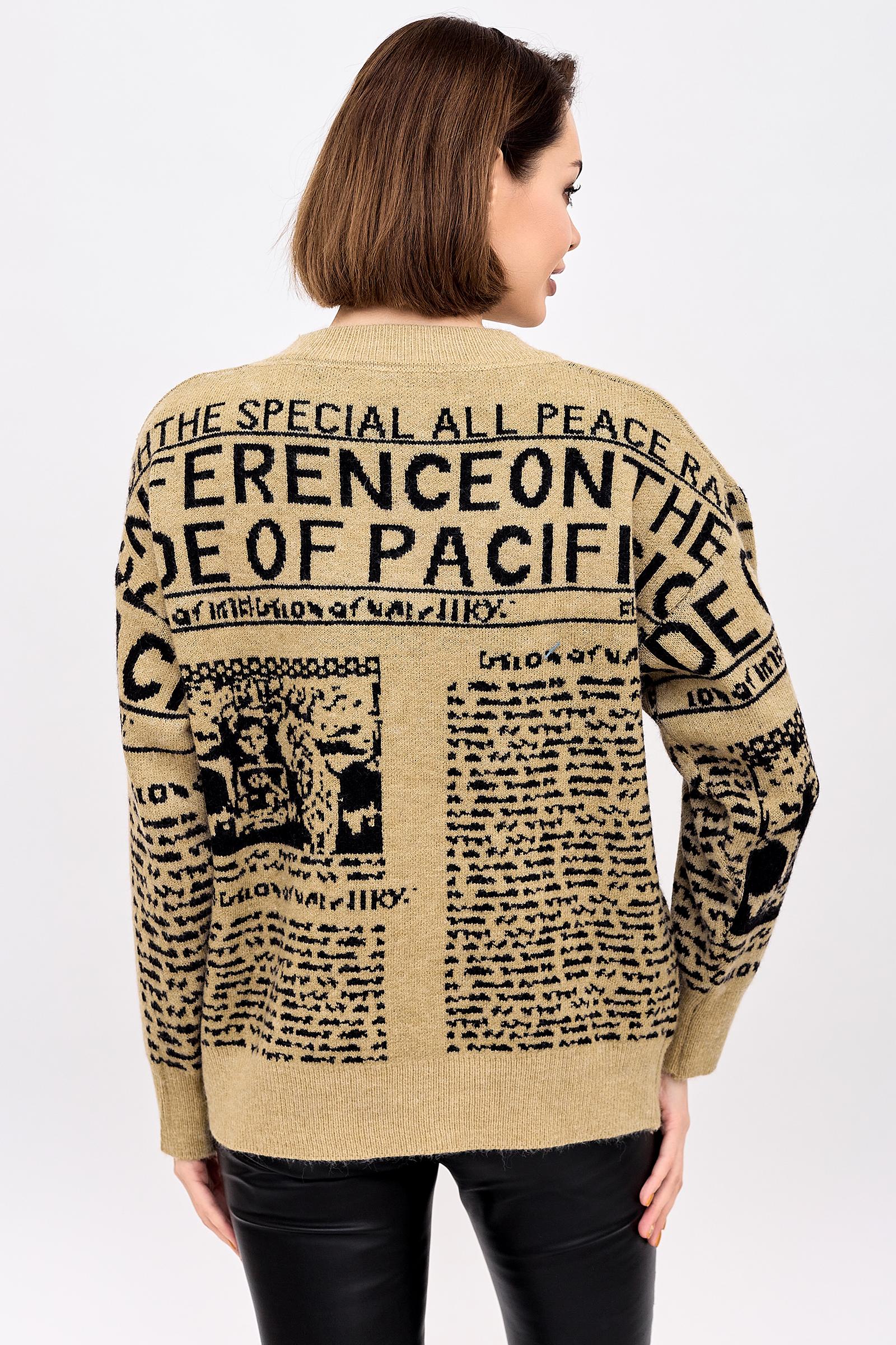 Уникальный, яркий джемпер выделит Вас среди других. Яркий и оригинальный принт в стиле газетных колонок и шрифт делает модель джемпера необычной и привлекательной. Теплый и в тоже время дышащий материал позволит чувствовать себя комфортно как на улице, так и в помещении. Красиво джемпер можно сочетать как с брюками, так и с юбками.