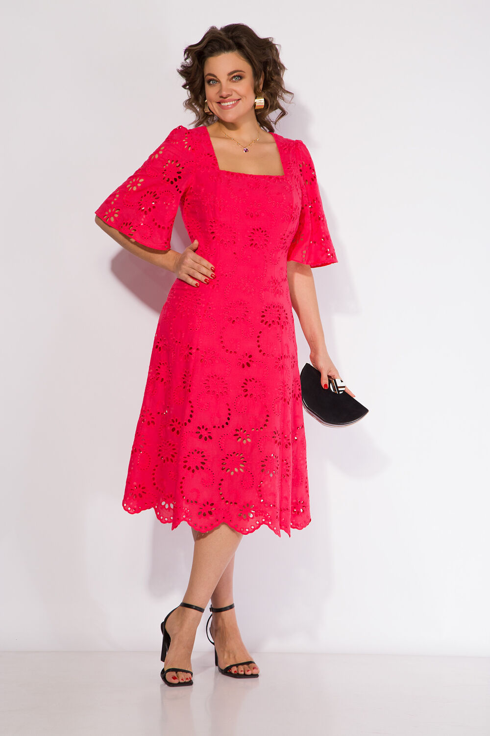 Летнее платье - это неизменный атрибут сезона отпусков, а также жарких городских будней и романтических вечеров. Надев это нарядное платье длиной миди, каждая дама непременно окажется в центре внимания!