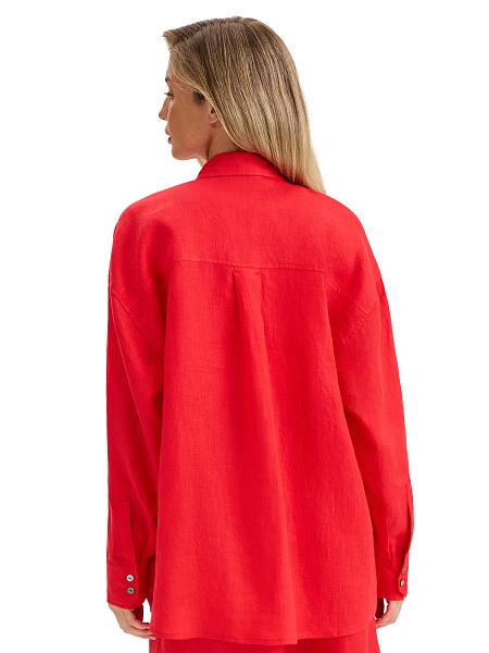 Льняная рубашка из коллекции LINEN − базовая одежда в повседневном летнем гардеробе. Актуальная модель оверсайз прямого кроя, с длинным рукавом, функциональным нагрудным карманом, аккуратными разрезами по бокам, на пуговицах контрастного цвета. Хорошо и стильно смотрится, вне зависимости от телосложения, не ограничивает свободу движений. Подходит для ношения в городе, в том числе в офис, для путешествий, загородного и пляжного отдыха, заменит тунику, накидку, легкую кофточку.  В сочетании с льняными шортами или брюками получается стильный и удобный повседневный образ. Прекрасно смотрится в сочетании с льняным платьем, из этой же коллекции. Представлена в трех цветах: в лаконичных белом и черном и эффектном красном.
