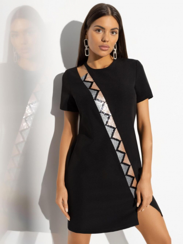Эффектное платье в стиле «Бохо» с  цельнокроеным рукавом и настрочными карманами выполнено из очень мягкой и приятной ткани.  Платье а-образного силуэта с округлым вырезом и отрезным лифом, нижняя часть (юбка) на сборке.  Лиф цельнокроеный с узкой отрезной бейкой по горловине и притачными манжетами из однотона. Низ платья фигурный с притачными вставками по бокам.  Спинка как и перед отрезная.