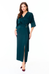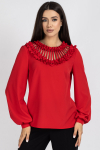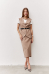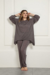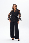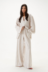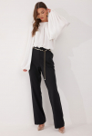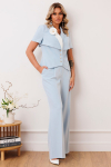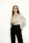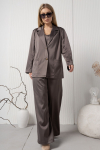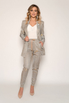 Комплект 2ка, состоящий из жакета и брюк. Легкий жакет на подкладке с объёмными рукавами. Перед на запах без застежки, под пояс по талии. Брюки прямого силуэта на эластичной резинке по талии. По переду расположены карманы с наклонным входом. Длина  жакета по спинке 72-78 см. Длина брюк 110-116 см.