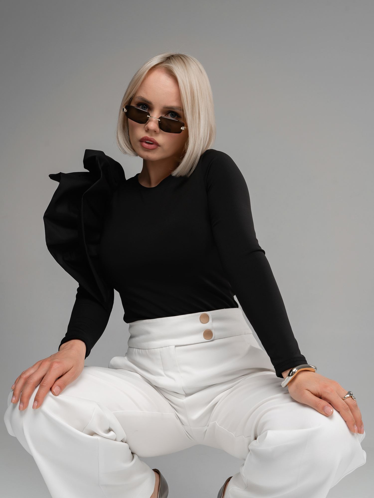 Женский лонгслив из бифлекса черного цвета с длинными рукавами прилегающего силуэта от российского производителя "FiftyPates". Модель выполнена из плотного матового синтетического полотна , который не теряет форму и обладает очень высокой эластичностью. При этом материал не мнется и не нуждается в глажении. На правом плече объемный атласный волан, который придает элегантности вашему образу. из бифлекса черного цвета Лонгслив женский красиво облегает фигуру и не стесняет движений. Вы будете выглядеть превосходно в любой ситуации - будь это повседневный или нарядный образ для праздничных и вечерних выходов. Лонгслив женский с длинными рукавами можно носить как блузку с юбкой или брюками. Идеально на весну и лето. Стильный лонгслив создаёт чувственный и эротичный образ, при этом он подчеркнет вашу красоту и индивидуальность.