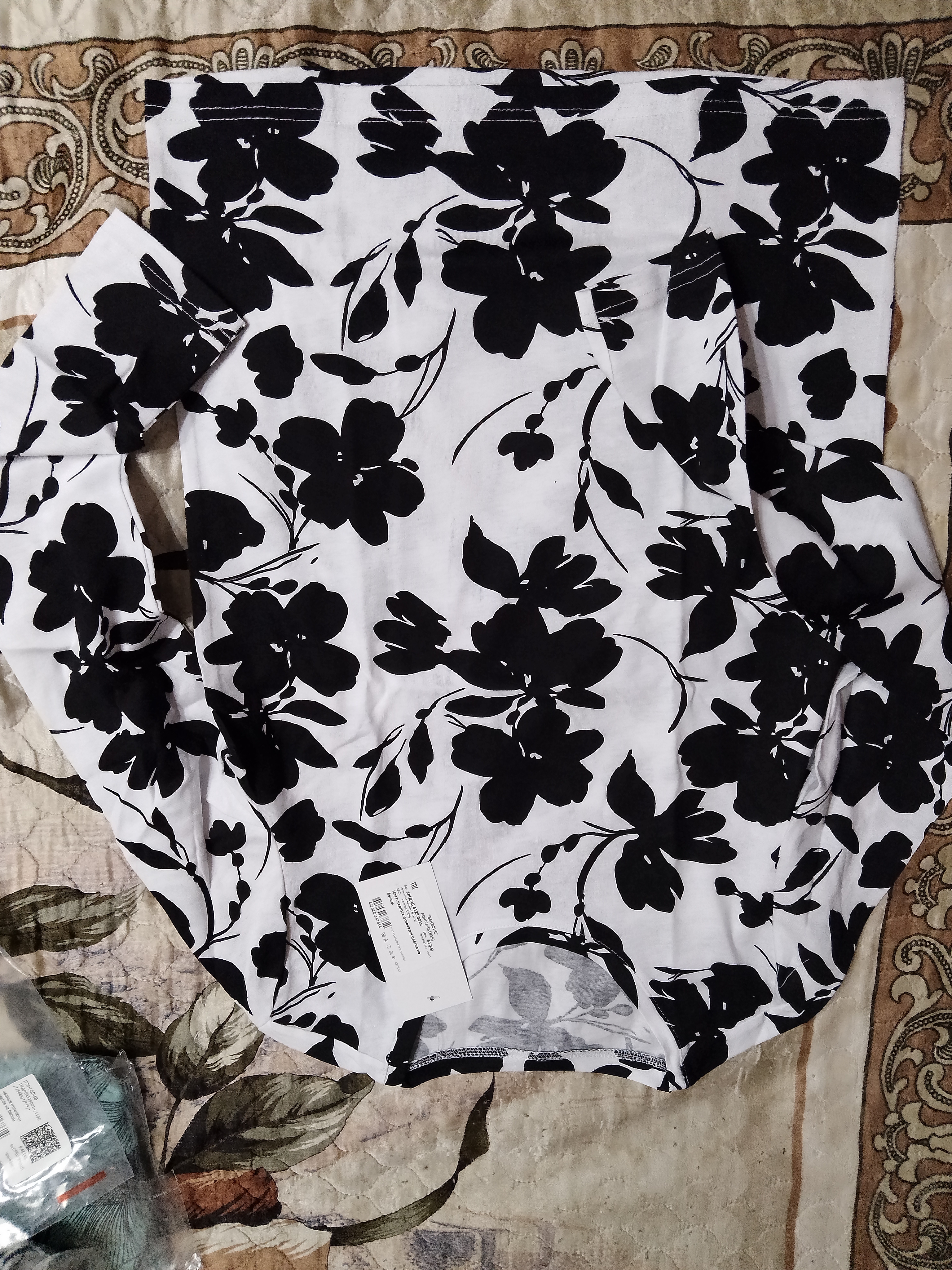кулир / хлопок 100% - / черные отпечатки цветов на белом / -