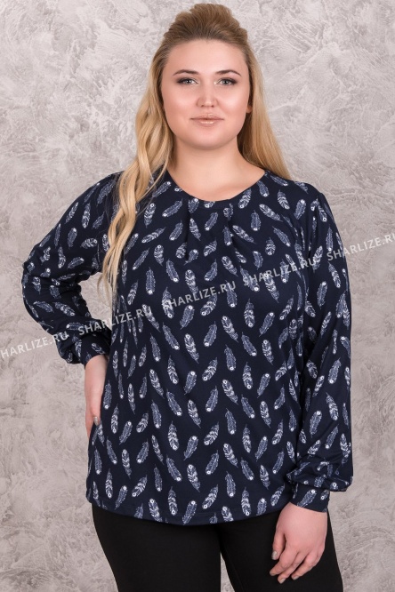 Лонгслив из пластичного и мягкого трикотажного полотна представлена в приятном синем оттенке, который дополнен тонким набивным рисунком светлого оттенка. Набивка лонгслива может отличаться от фото.
