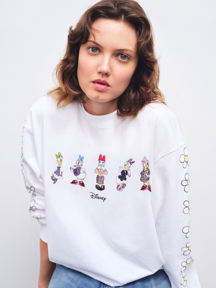а также принт с изображением Дейзи Дак, выполненный в винтажном стиле.