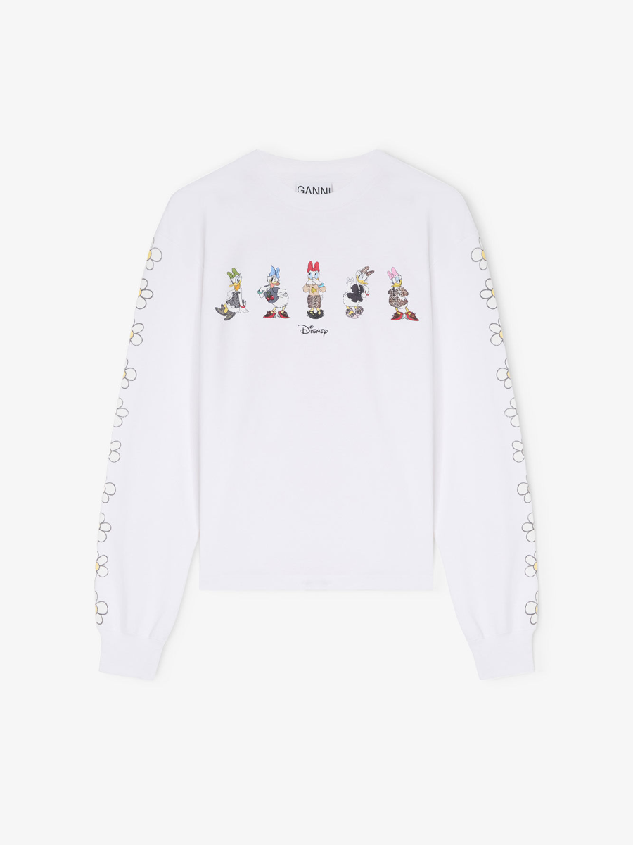 Этот лонгслив G*NNI x Disney имеет круглый вырез горловины, ребристые манжеты и нижний край,