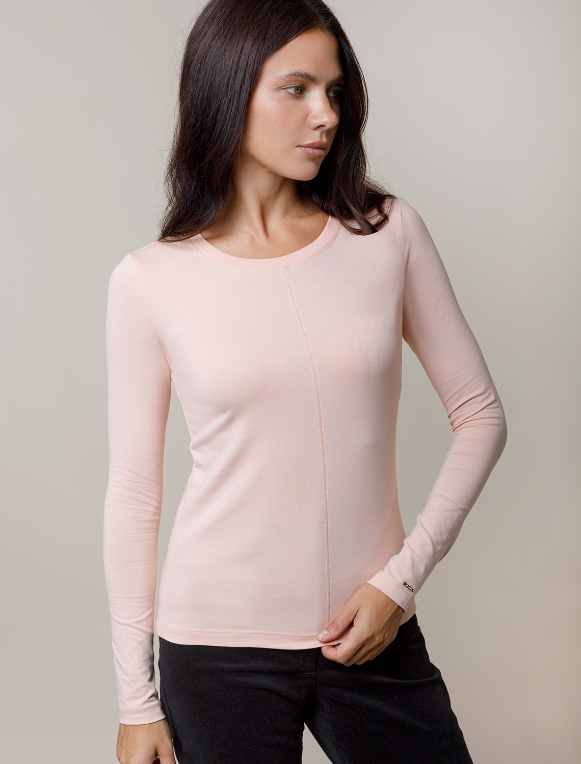Лонгслив выполнен из премиального хлопка с эластаном. Модель прилегающего силуэта идеально сидит по фигуре. Хорошо подойдет первым слоем в многослойные образы. Фишкой изделия служат декоративные швы и фирменный металлический логотип бренда на рукаве. 92%Хлопок 8%ПУ