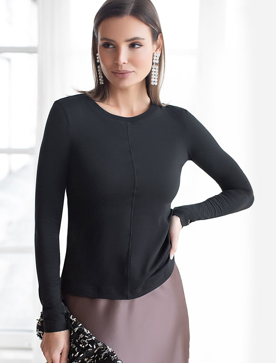 Лонгслив из премиального хлопка с эластаном D49.116 черный