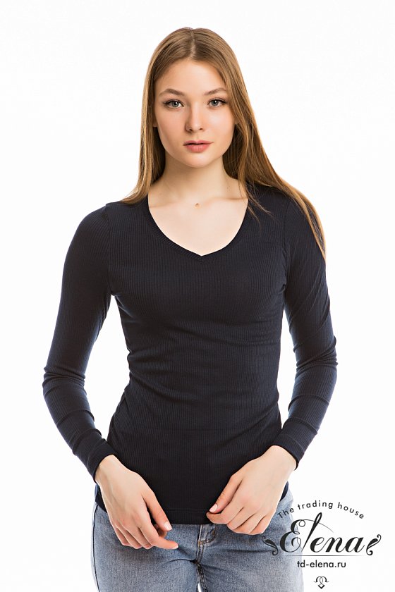 Лонгслив с длинным втачным рукавом из кашкорсе-вискозы. Облегающий, с V-образным вырезом с притачной планкой.