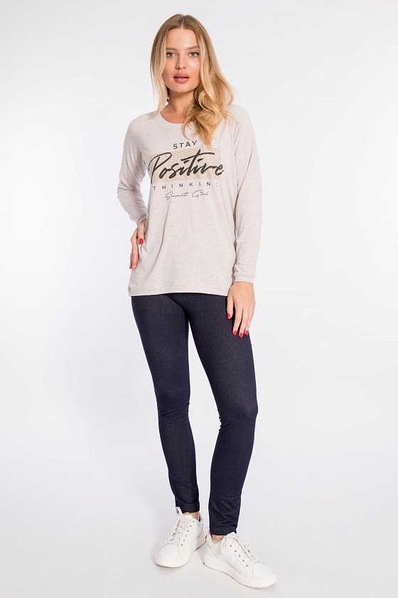 Женская толстовка изготовлена из кулирки с лайкрой, что делает ее не только комфортной, но и эластичной. Вырез горловины круглый. Длинные рукава покроя реглан придают изделию стильный вид.