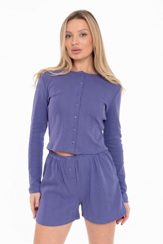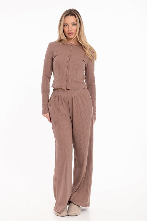 Лонгслив выполнен из трансферной рибаны, которая обеспечивает комфортную посадку и мягкость при носке. Модель полуприлегающего кроя с круглым вырезом горловины и длинным втачным рукавом создаёт лаконичный силуэт. Удобная застежка на пуговицы по всей длине спереди делает эту модель практичной и функциональной. Этот лонгслив станет отличной базой для уютного домашнего образа или расслабленного отдыха.