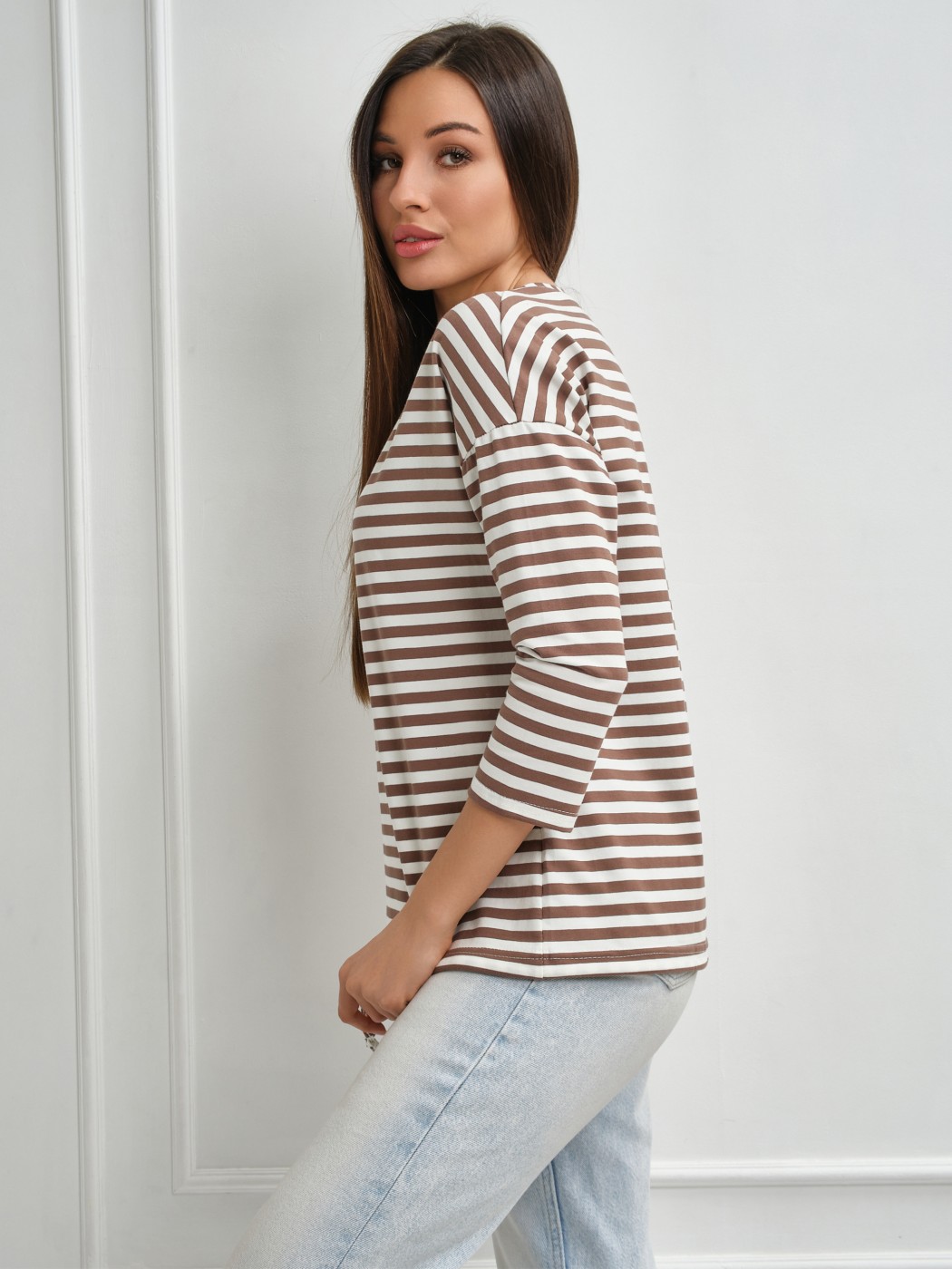 Лонгслив Николь какао/полоса