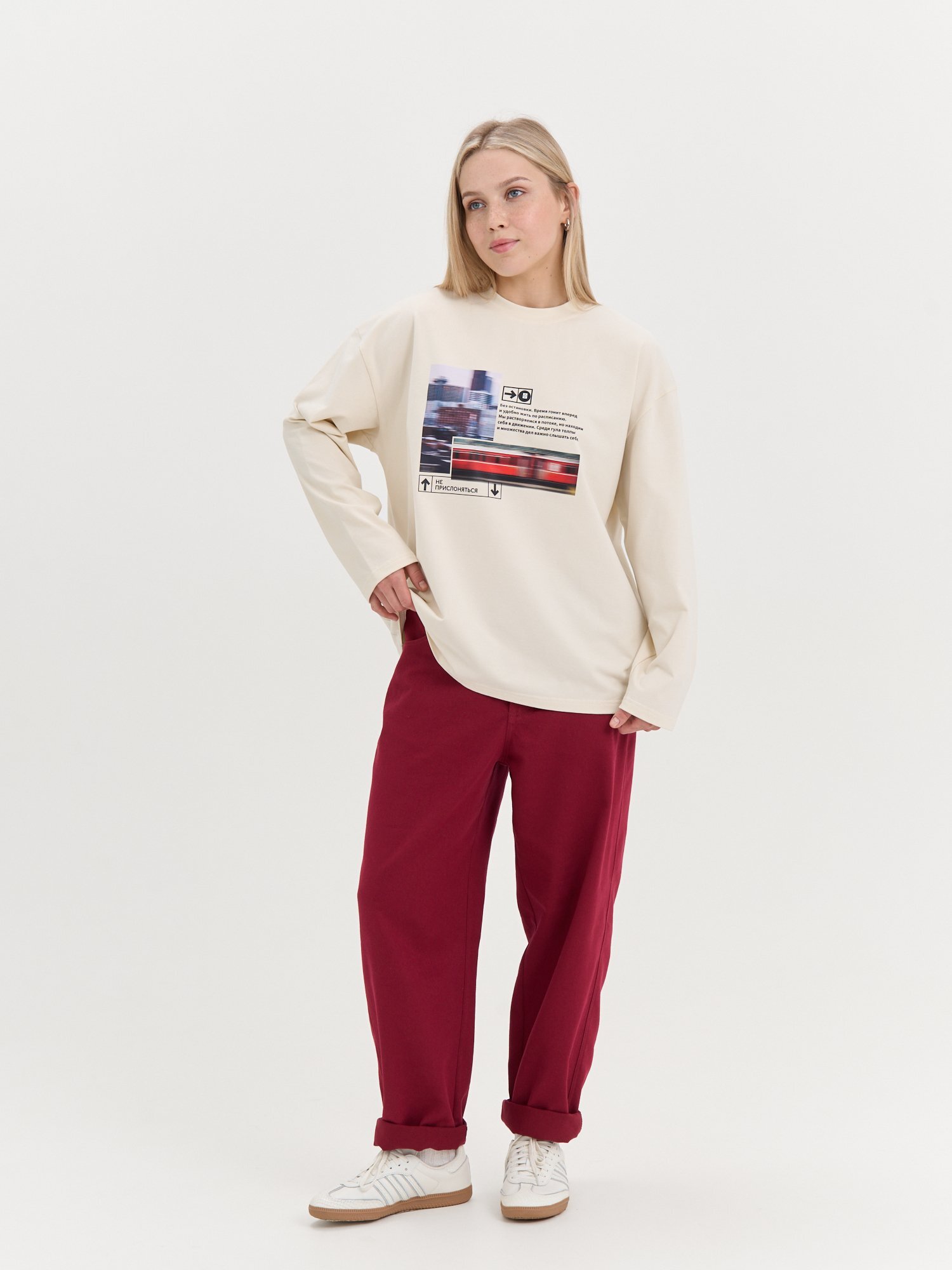 Лонгслив оверсайз с велюровым эффектом "Молоко" женский