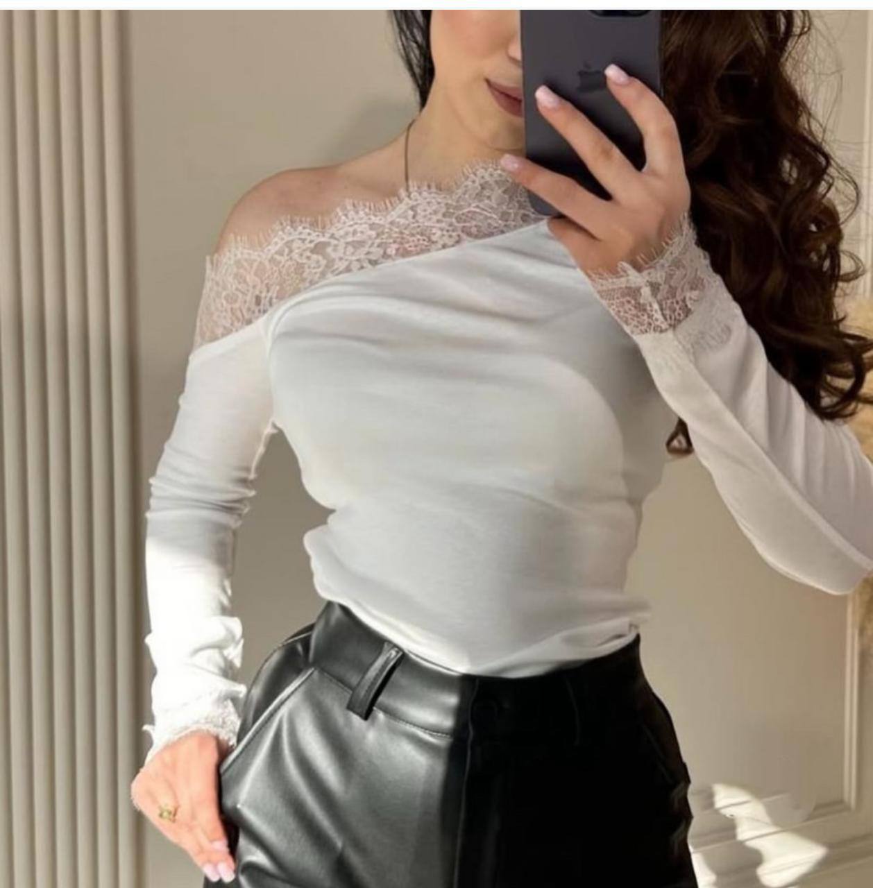 Лонгслив с кружевом БЕЛЫЙ,КОРИЧНЕВЫЙ,ЧЕРНЫЙ,БУРГУНДИ