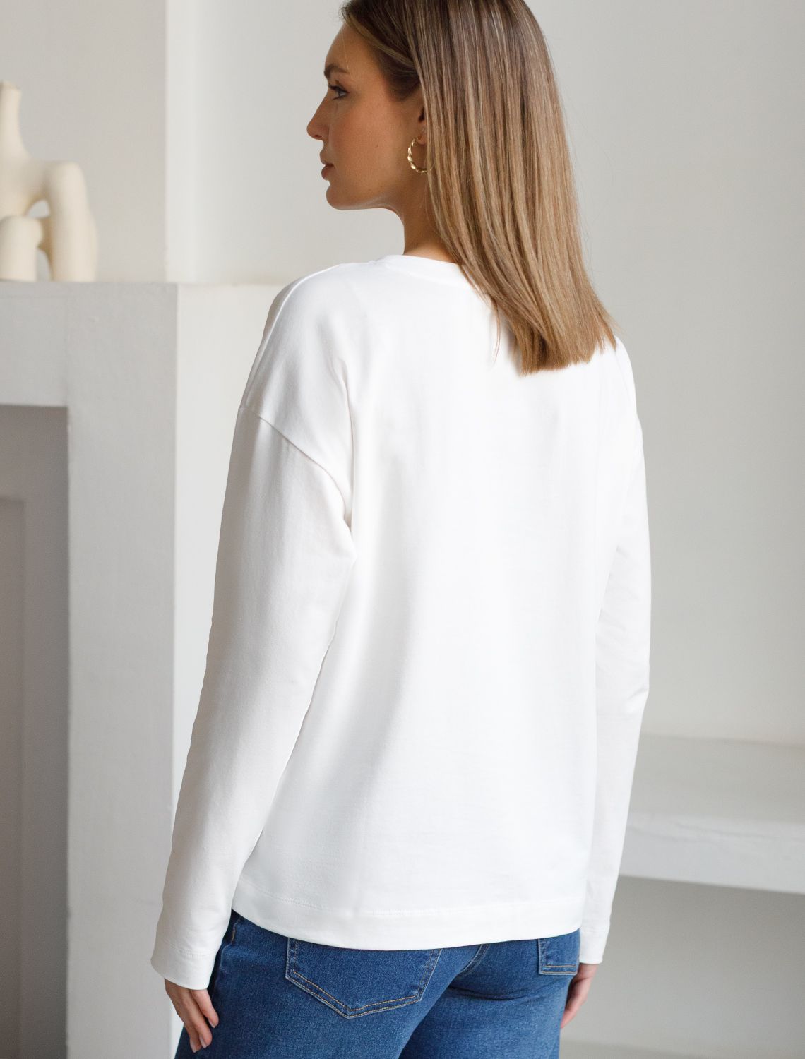 Лонгслив с принтом из премиального хлопка с эластаном D49.148 молочный_листья