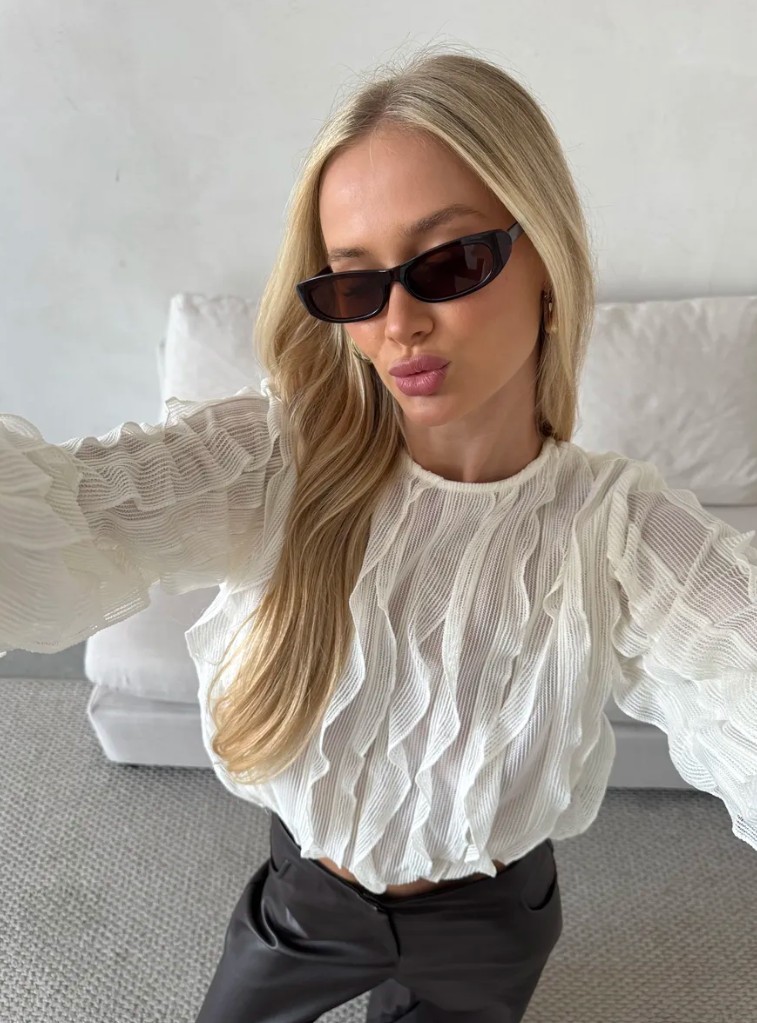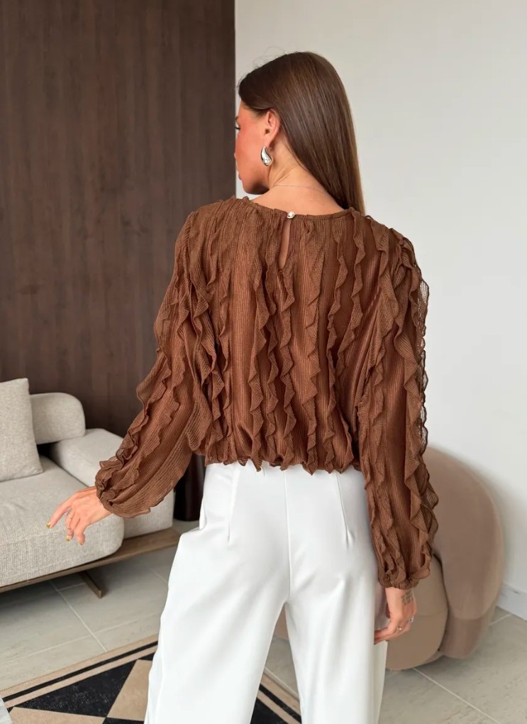Лонгслив с рюшами БЕЛЫЙ,БОРДОВЫЙ,ГОЛУБОЙ,КОРИЧНЕВЫЙ,РОЗОВЫЙ,ЧЕРНЫЙ