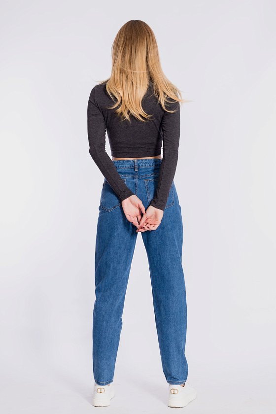 Лонгслив укороченный из однотонной кулирки с лайкрой. Силуэт облегающий, круглый вырез горловины оформлен притачной планкой.