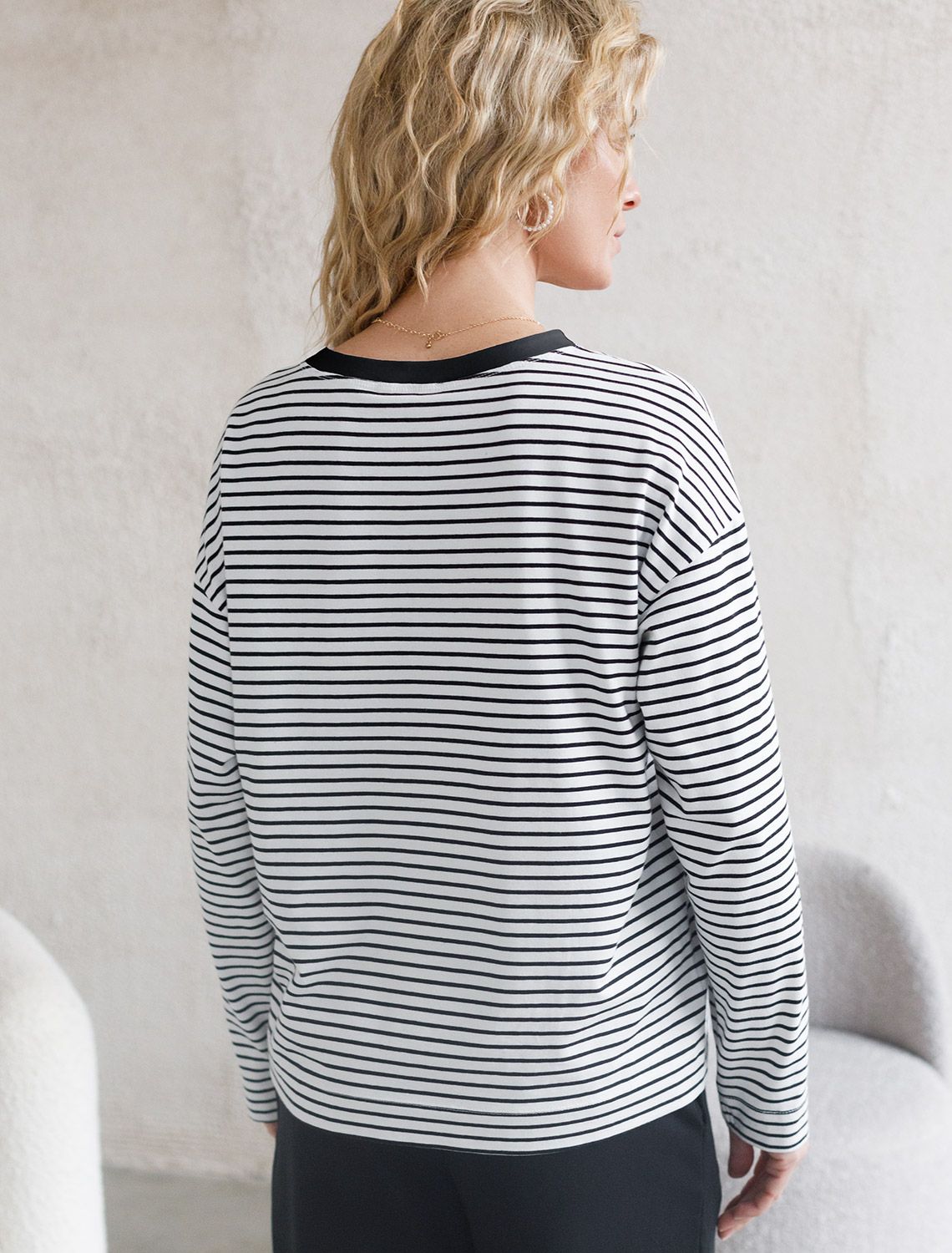 Свободный лонгслив белого цвета в черную полоску с длинным рукавом выполнен из премиального хлопка с добавлением эластана, плотностью 170 Г/м2, что обеспечивает комфорт и приятные тактильные ощущения. Полоска - придает изделию легкую текстурность, принт в виде надписи, который нанесен красками с устойчивым покрытием, добавляет стиля и индивидуальности. Перевод надписи: It is a litlle thing called attitude that makes a big difference - Это такая мелочь, как отношение, которое имеет большое значение. Круглый ворот создает универсальный образ, который подойдет для повседневного использования. Такой лонгслив идеально подходит для весеннего и летнего сезона благодаря легкой и дышащей ткани. Представленная широкая размерная линейка позволяет выбрать оптимальный вариант на любую фигуру, в том числе на плюс-сайз, обеспечивая свободу движений и удобство на каждый день. Этот комфортный лонгслив станет отличной базой в гардеробе, сочетаясь с различными стилями одежды и создавая простой, но эффектный образ.
