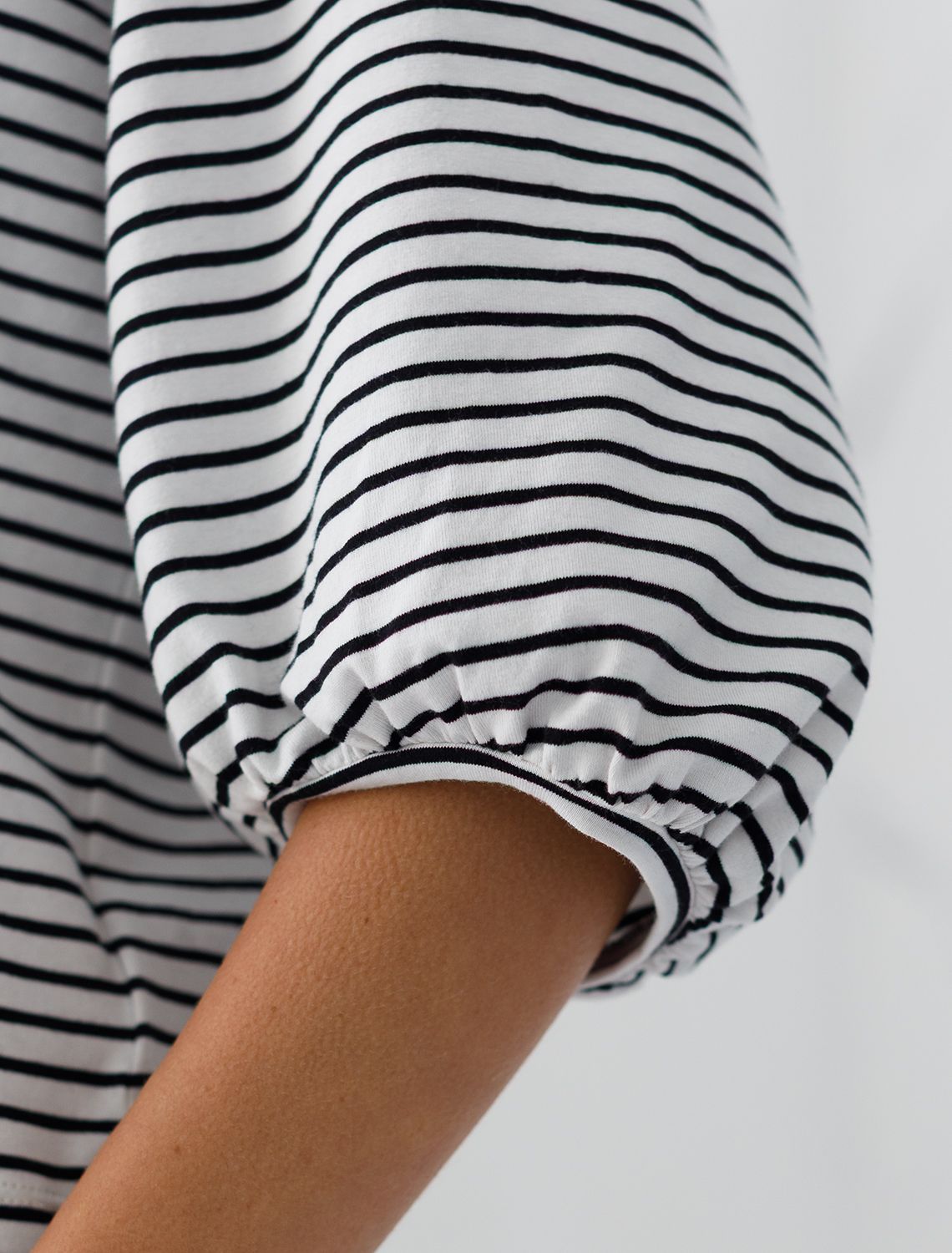 Лонгслив в полоску с рукавами-буфами из премиального хлопка с эластаном