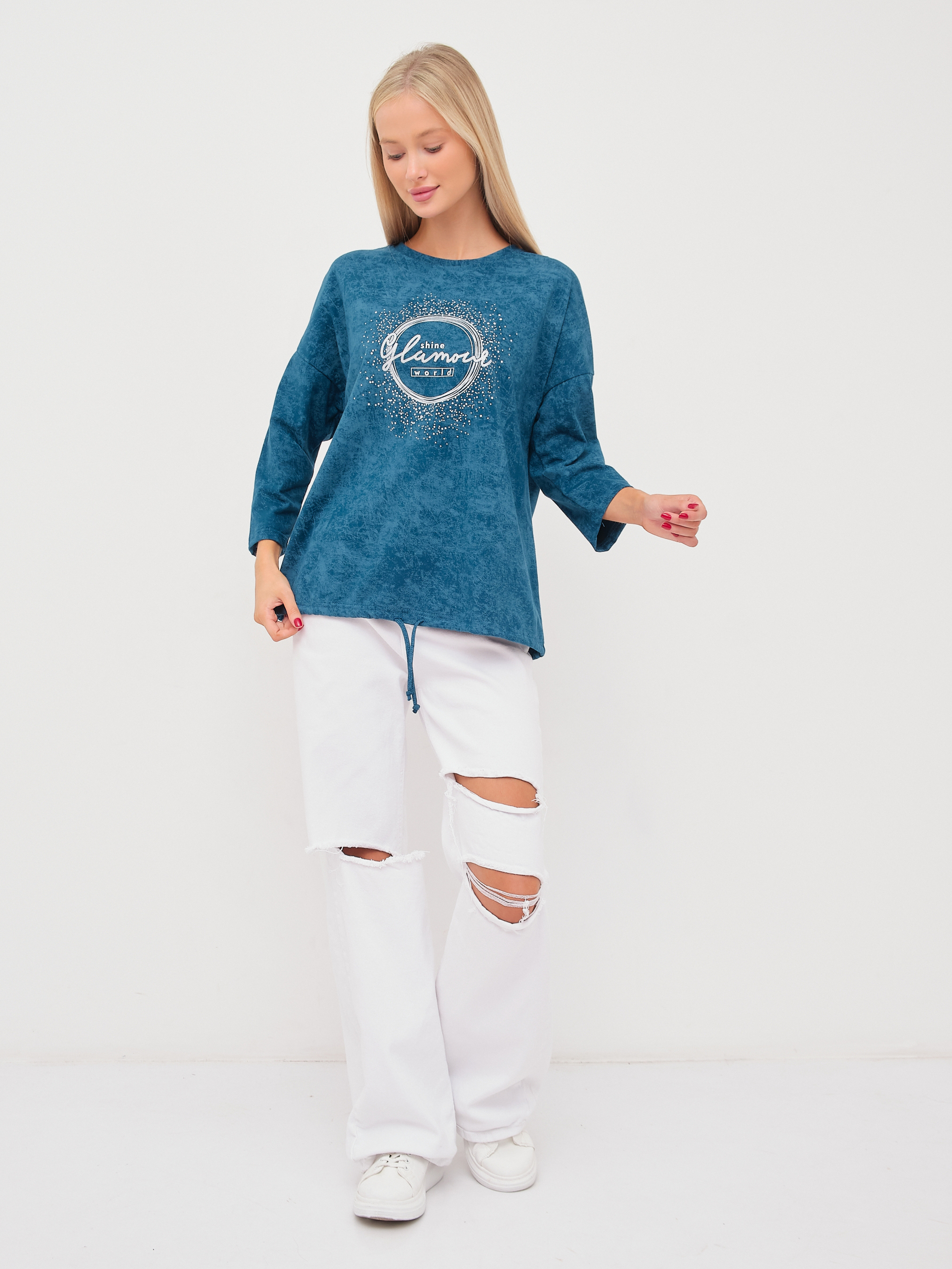 Лонгслив жен. Гламур варенка петроль